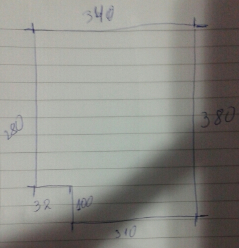 В ляво с чупкака е цяла стена там вграден гардероб,насреща спалня,в дясно е прозорец с врата за тераса,а долу е входа от коридор
