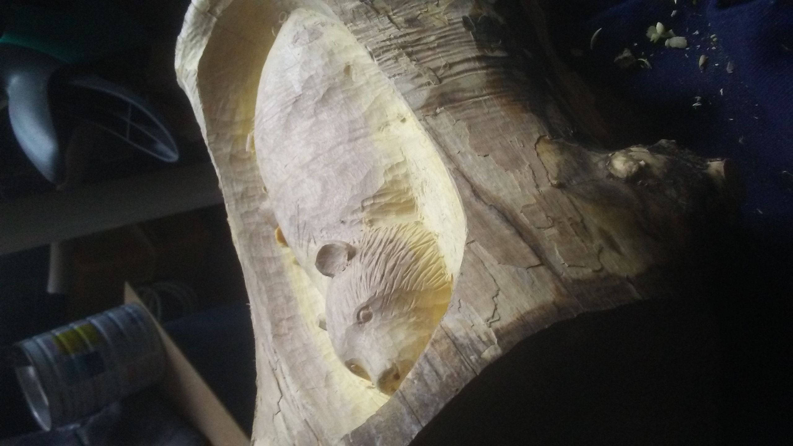 Здравейте,ето нещо което почнах днес.Правя го без предварителен модел ,"шапката" смятам да я издълбая и да се получи нещо като ваза.Също трябва да измисля някаква поставка защото в момента не е много стабилно.