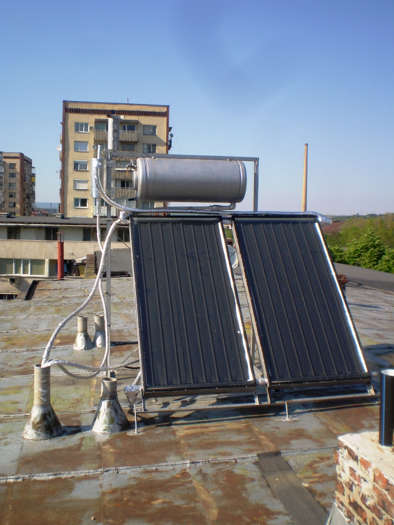 Към недостатъците слагам лекия шум от падащата течност но се чува само ако си непосредствено до съда. И лекото оскъпяване ако се дири нещо готово.Но пък в стила на форума и не е трудно да се направи. Стар пожарогасител и ламаринена обшивка. Всъщност с тенекето видях най голям зор докато го скопча. Тоя тенекеджийския занаят не ми се отдава а и нямам условия. А и ползвах някаква стара ламарина. Останалото мисля че е ясно за изолация всичко е запълнено с монтажна пяна.