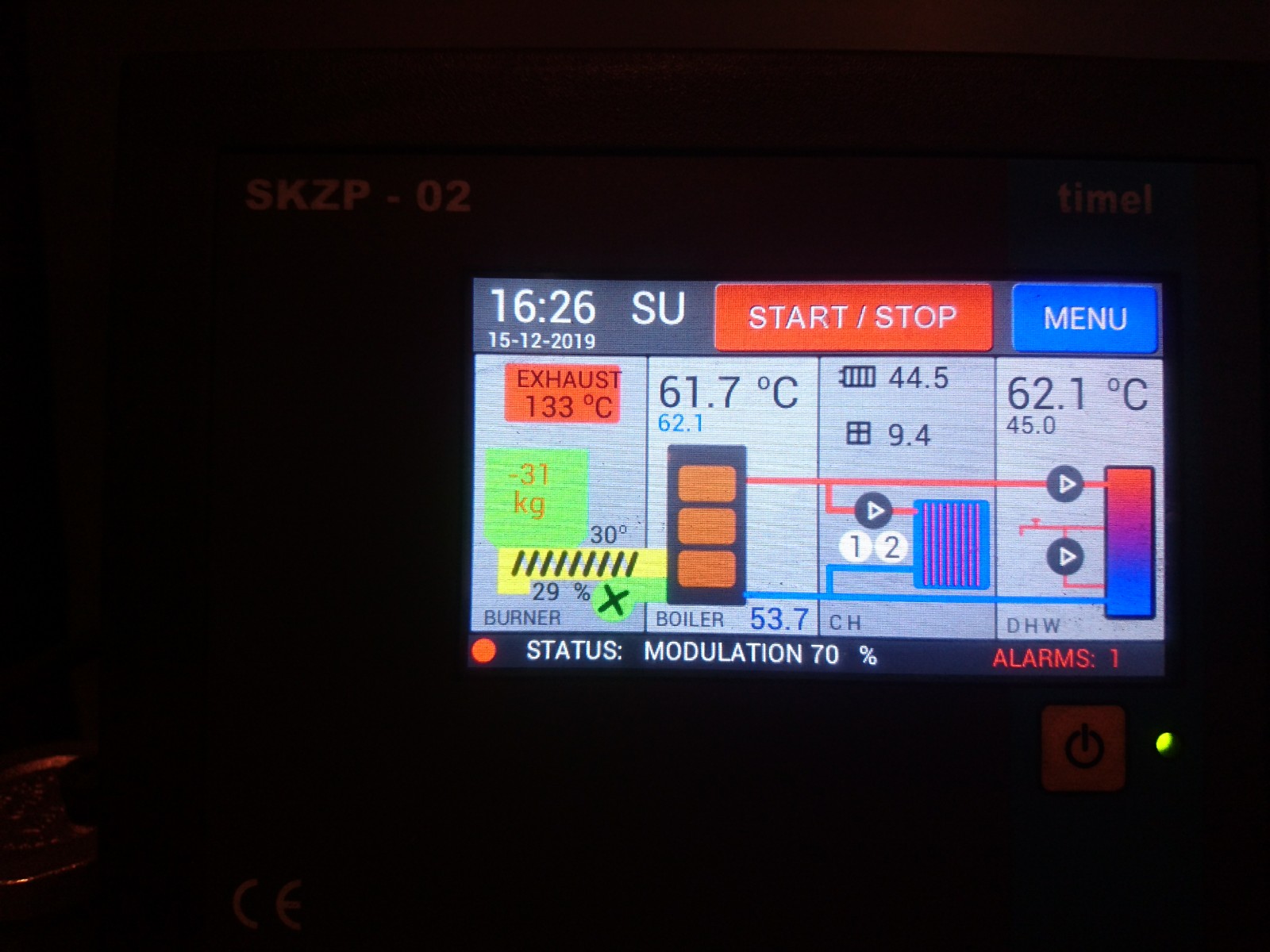от около седмица се сдобих с екоенергия 25кв с контролер SKZP-02 монтирана на котел грейко 30кв. Мъча се да горя донбаска пепел 0-6мм около 7000ккал/кг, няколко пъти замерих капацитета на шнека излиза около 15-15.5 кг въздух 10-26% при тия настройки много неизгорели частици падат в пепелника и за 7 8 часа се запълва до степен преливане като отворя врата се изсипват на земята и става страшен пепеляк(буквално ядрен взрив в котелното).При повишаване на калоричността до 9000ккал/кг и капацитета на шнека до 25кг въздух 10-30 с допълнително добавяне на 5 при подаване долу горе се получава добро изгаряне но мощността недостига горелката е на 100% температурата на котела 46гр.Някой има ли опит с горене на пепел в екоенергия?