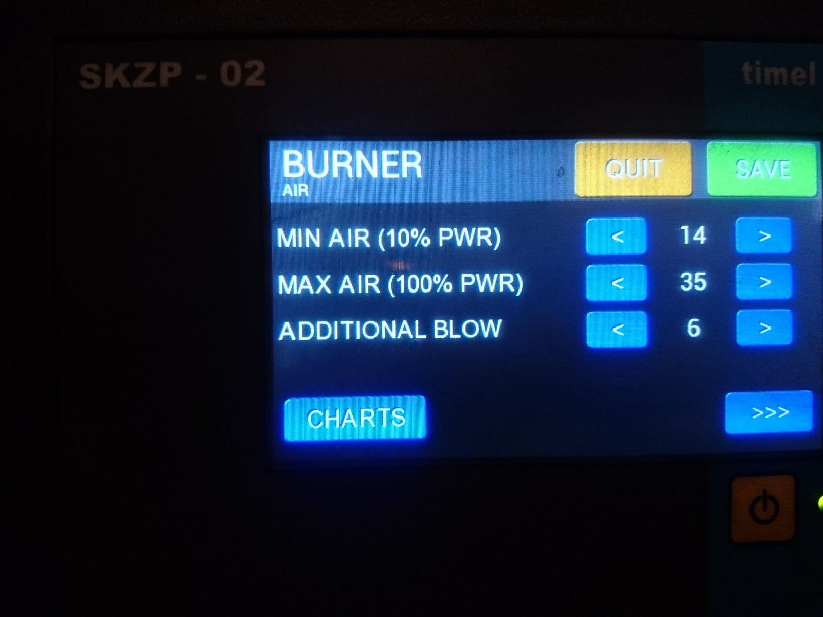 80w е вентилатора .Да шнека пуска малко гориво поради завишените калорий това съм го направил с цел да не падат неизгорели въглища в пепелника.Ще пробвам с 15 50 въздух да видим какъв ще е резултата