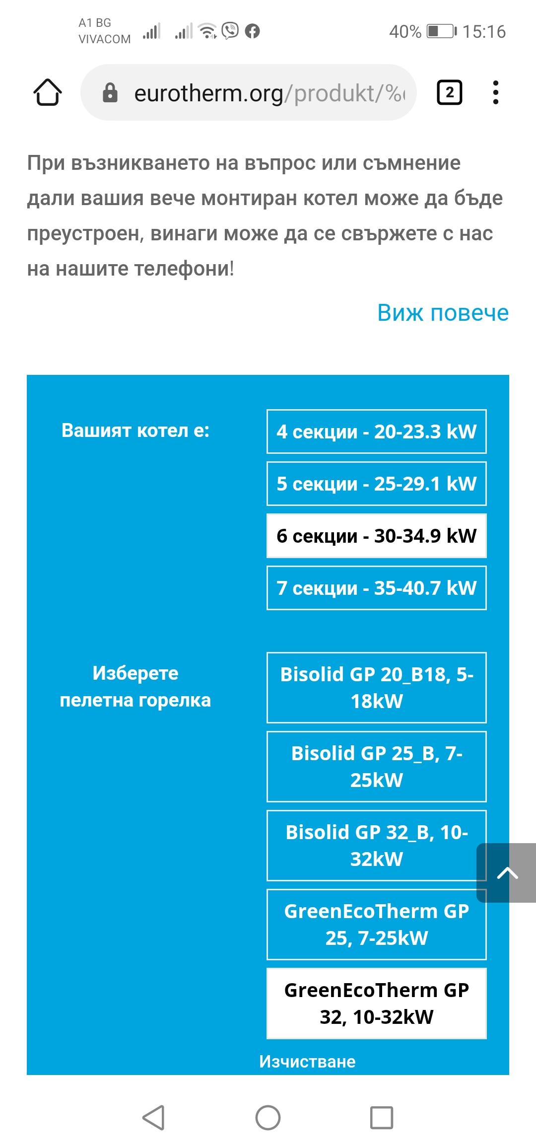 Здравейте! В момента отоплявам къща на 2 етажа на дърва с котел Виадрус 6 секции (34,9 kw). Нов съм във форума и искам да попитам. Обмислям да премина на пелети, и чета от известно време тук във форума, че е възможно да се пригоди моят котел на пелети. Гледам в интернет има фирма, която предлага комплект за цялостното преправяне на котлето. Какво ще ми препоръчате като модел горелка?