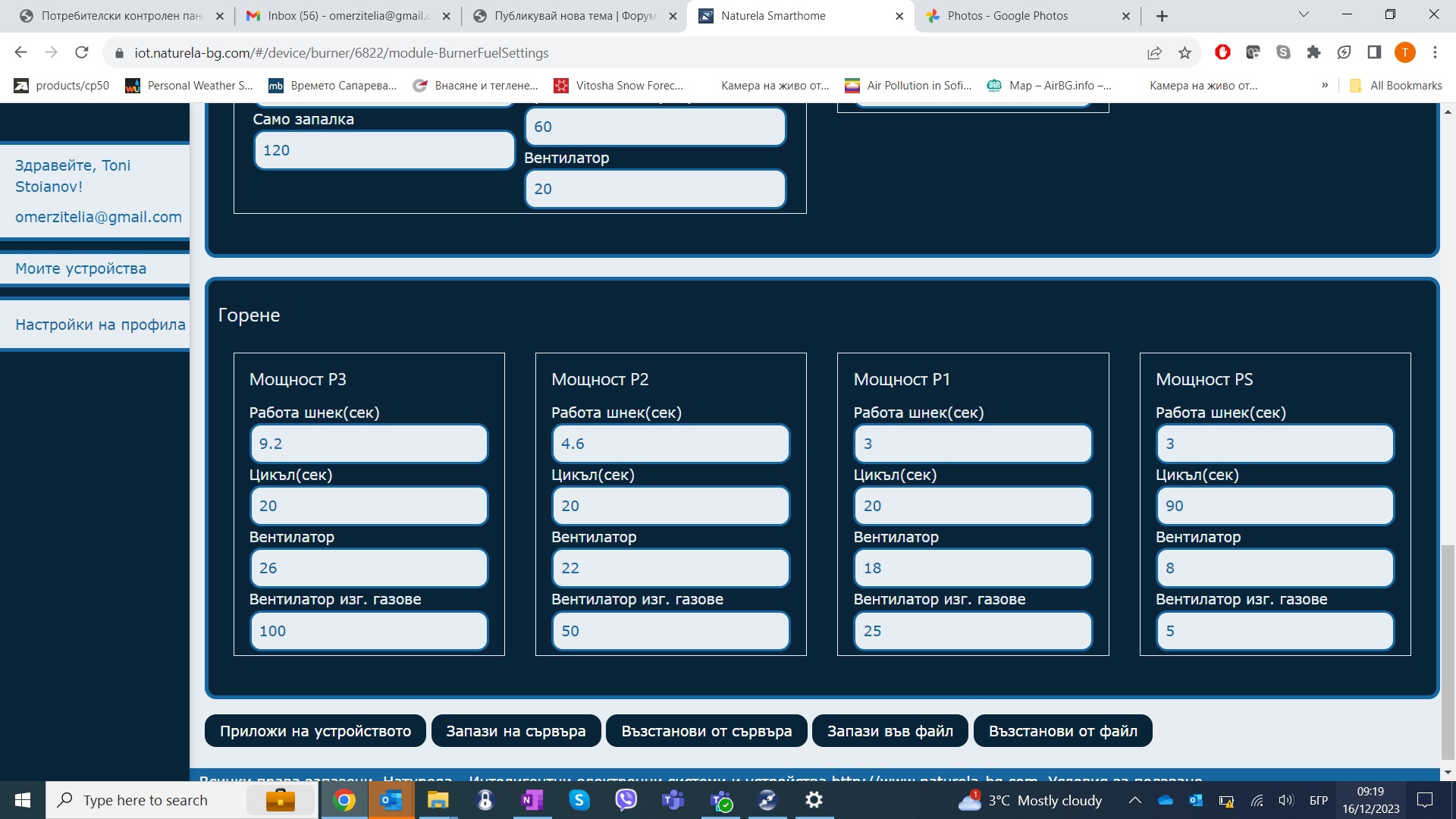 Тока спря и след спирането всичко си стартира нормално, но когато котела влезе в режим P3 шнека започва да подава прекалено често пелети и гаси котела без да има нужда. Откачих маркуча на шнека и го сложих в кофа буквално я пълни за 20мин.