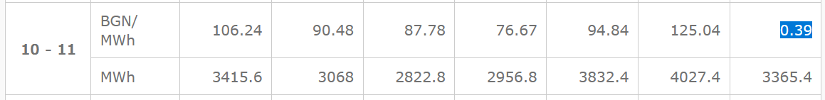 Утре преди обяд свободния пазар е щета... 39 стотинки за мегават.. мисля съм виждал и минусови цени..
