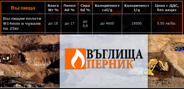 6osi6 написа:Преди време разговарях с тях и ми казаха, че планирали скоро да пуснат на пазара въглищни пелети фи 6мм и 8мм.fbr написа: сигурно няма да е далеч времето и на пелетите от въглищен прах. Това ще засегне и теб сигурно.За въглищни пелети Ø 14 мм ти трябва и горелка за въглища. Разликата в цената им в сравнение с калоричните ситни въглища и слънчогледовите пелети е пренебрежимо малка.Прикачен файл:Снимка на екрана на 2015-04-08 в 17.05.23.png