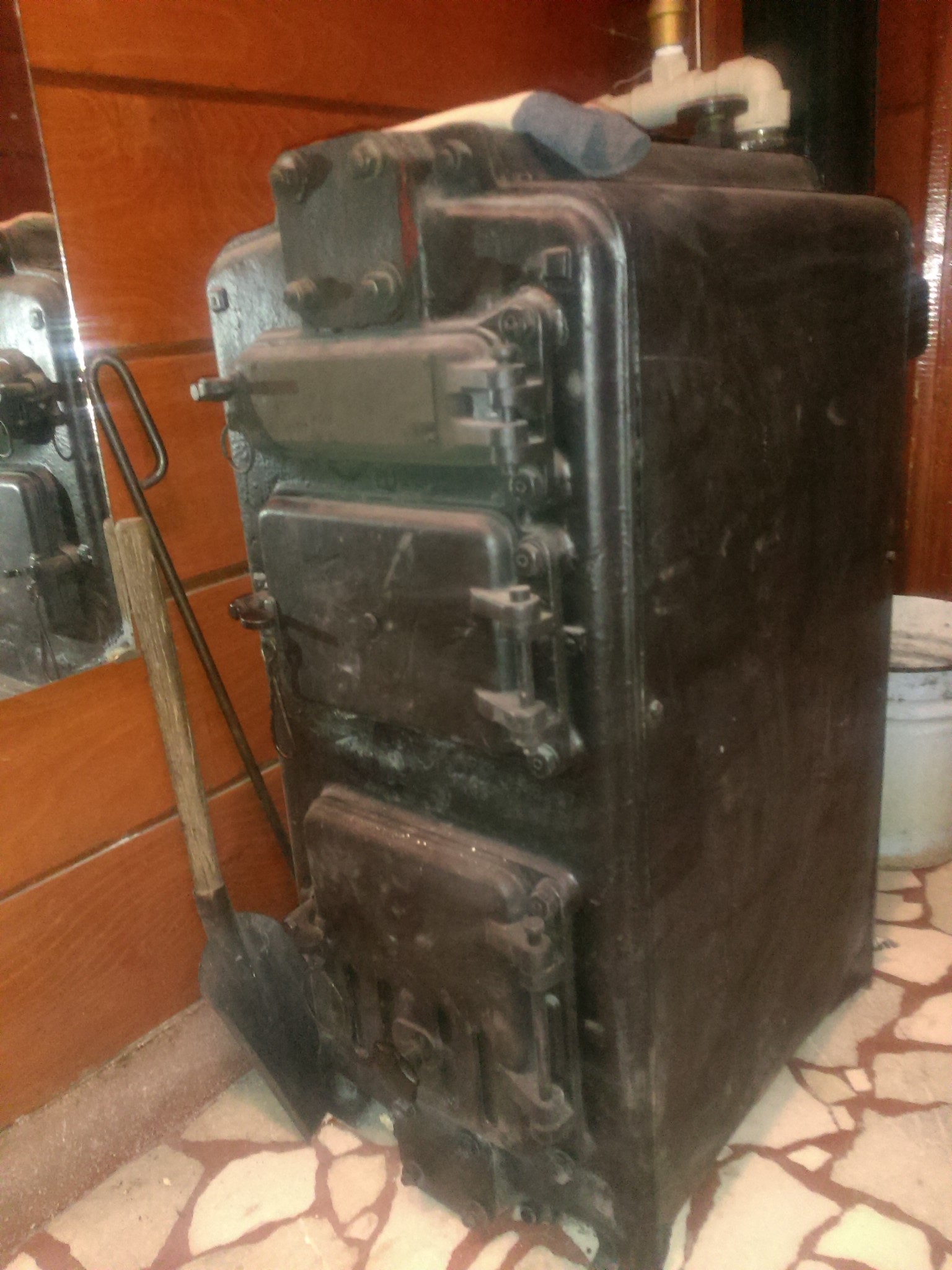 Температура на водата 90°C не е неприемлива, а е максималната температура на която трябва да работи котелът. Работната температура се регулира от термостата(таз джаджа, на която виси синджирът, който отваря клапата) Тя ще бъде такава, каквато е необходимо на радиаторите, да достигнат желаната от теб температура в стаите. Ще забележиш, че колкото е по-горещ котелът и се приближава към максималната мошност, токова по-добре гори. Доброто горене се отразява положително и на КПД-то. За това ти е трипътният вентил. Ако котелът по някаква причина достигне (около)95°C, ще се задейства клапанът по температура и ще пусне студена вода от водопровода през серпентината, която имаш в котела. За това ти е защитата по температура. Предпазен клапан по налягане се слага на затворена система. Според мен е по-добра от отворената. Разочарова ме хазартният начин, по който искаш да си построиш системата. Не познавам качествата на ппр, а и честно казано не ме интересуват, защото не познавам пластмаса, която да издържа на прегрята пара(заврял котел), а освен клапана по температура не виждам какво ще спре котела да заври, ако помпата изгори например.