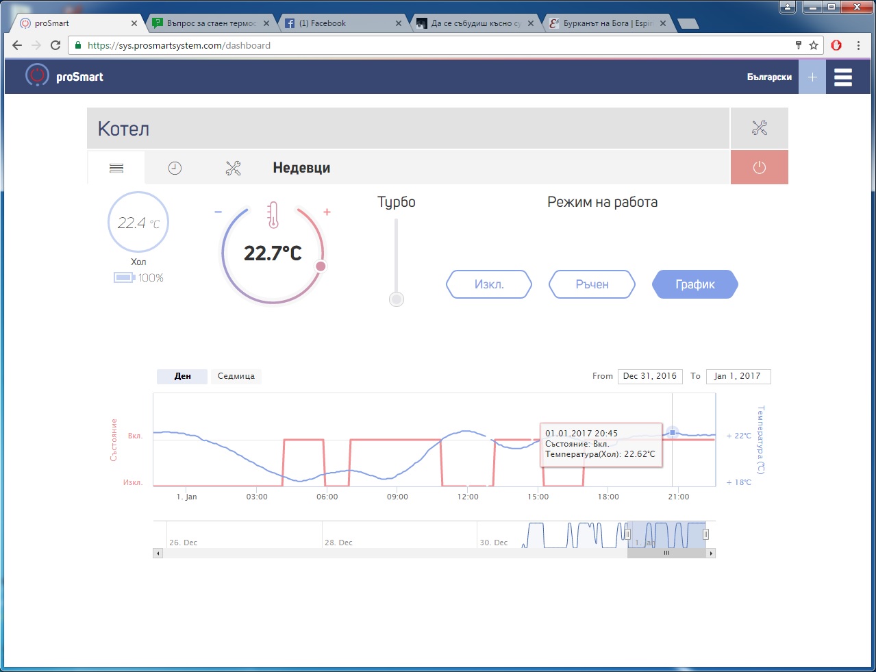 Изхода се управлява по първия сензор, но всички се логват. Има още какво да се желае, като достъп до история повече от една седмица и екстракт на данни, но като начало е супер: