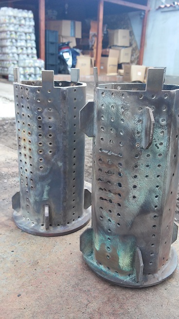 аз имам горелка Burnit Pell 25kW, не е ЕКО модела, има шнек в нея. За съжаление в пепелника падат доста недоизгорели пелети. При увеличаване на въздуха не се подобрява положението. Датчика за осветеност отчита ниски стойности при работа на максимална мощност (задръзства се с пелети). Работи добре на първа (10kW) и втора степен (15-18kW). Определено дупките за въздух на главата не са разположени оптимално. Главата на горелката е от новия тип от по-дебела (5мм) ламарина. Имам приятел със стария тип глава от ламарина 3мм и там горенето е по-добро. Ето снимка на 2те глави. вижда се как тънката ламарина е поизгоряла за 4 години еклпоатация. "Специалистите" от шуменската фирма са променили местата на част от отворите и резултата не е особено добър. Предстои тунинг с разпробиване на допълнителни отвори. Опитах да сложа мрежа под горелката, където да падат пелетите и да доизгарят - падналите пелети изгарят напълно, но се повишава температурата на димните газове от 150оС на 170оС, поради екраниращото действие на мрежата (горелката е монтирана на на 35кв Симе 7 секции на долната врата над водната скара).