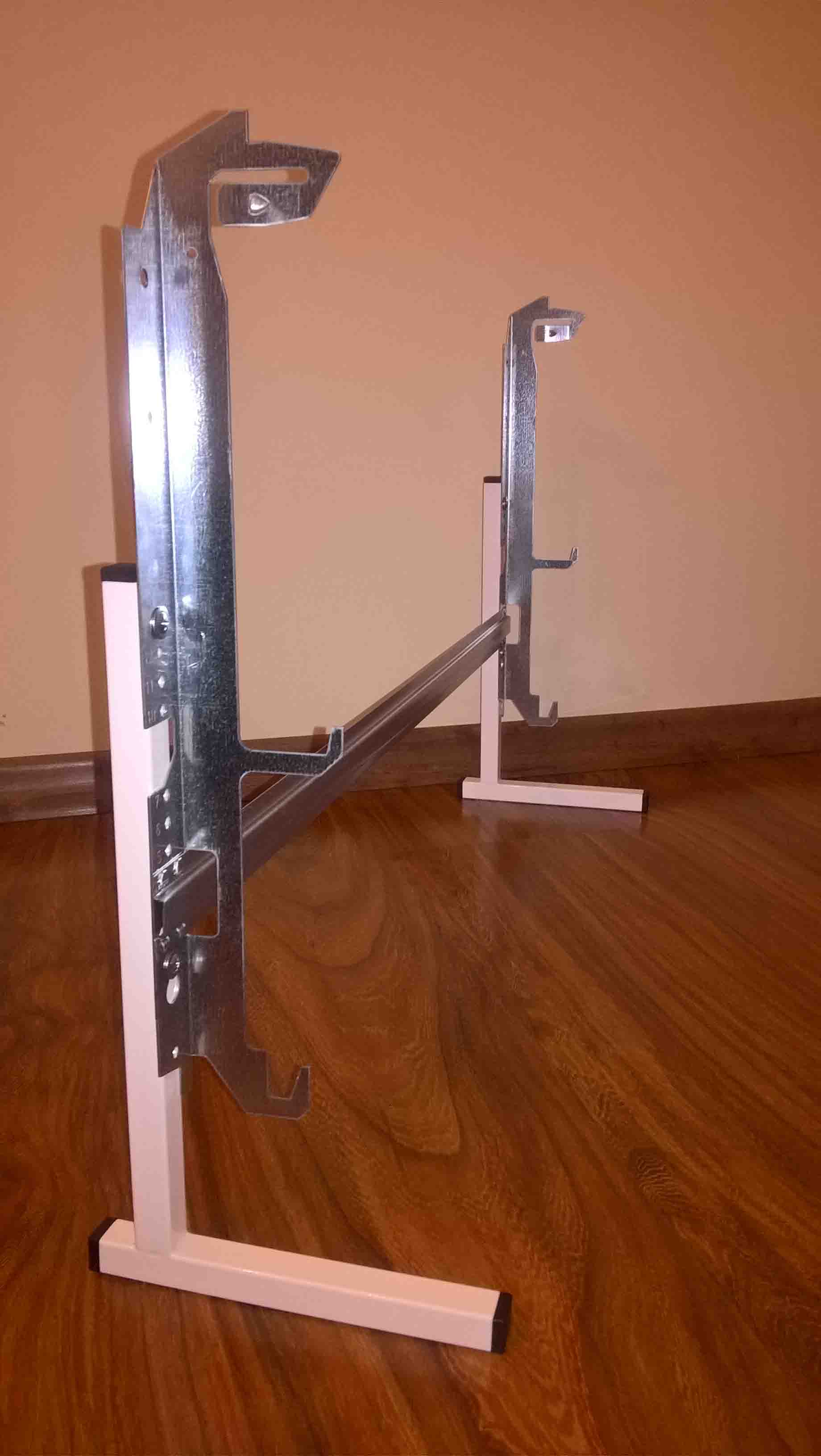 Първо трябва да свалите стойката за стена от конвектора. след това поставяте върху нея мобилните стойки с два винта.