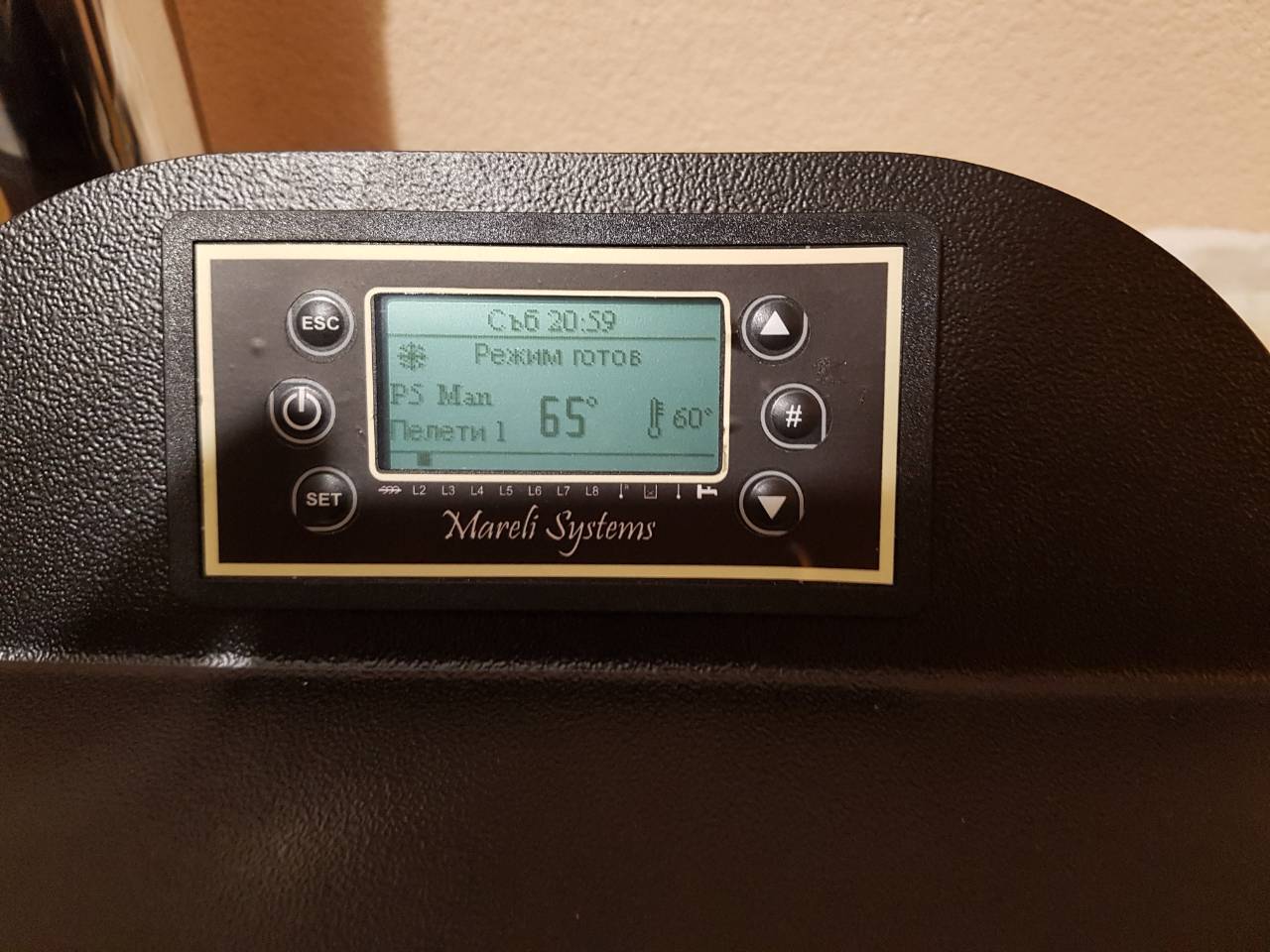 Здравейте колеги. Мой приятел е закупил въпросната камина, но инсталаторите са я пуснали и са си тръгнали. Тя е доста мощна, за това което ще отоплява, но вече е късно. Сега ми обяснява, че гори много яко, бързо стига 60 градуса и изключва, а не влиза в модулация. Дайте акъл как да се влезе в настройките и ако може да и се намали подаването та огъня да не е толкова голям и да влиза в модулация. Управлението е това от снимката.