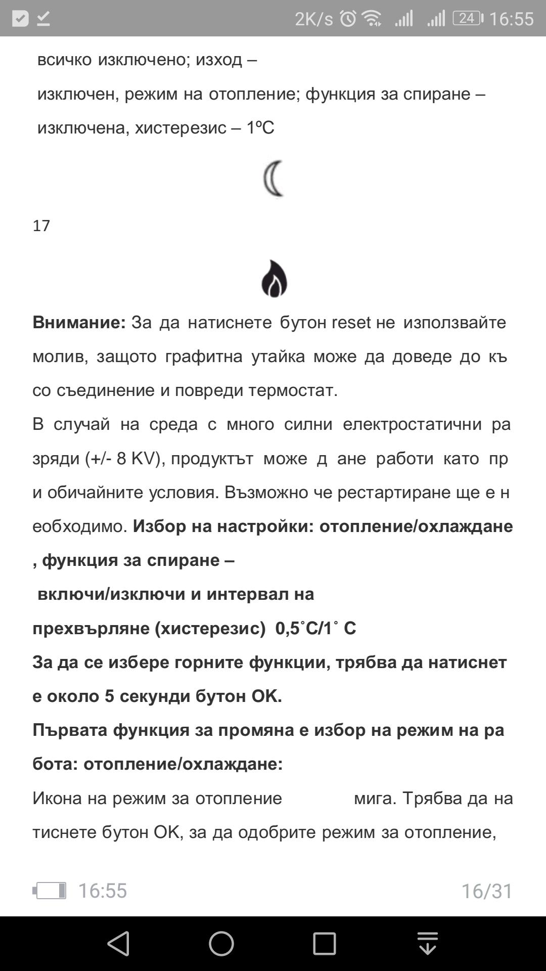 manobg написа:Ако термостата е свързан правилно, няма причина да не тръгва. Аз съм с такъв 4-та година и работи безупречно, има един недостатък заради който другата година ще го сменя, но това си е моя прищявка. Вие сам ли свързахте термостата към управлението или друг го направи вместо вас ?