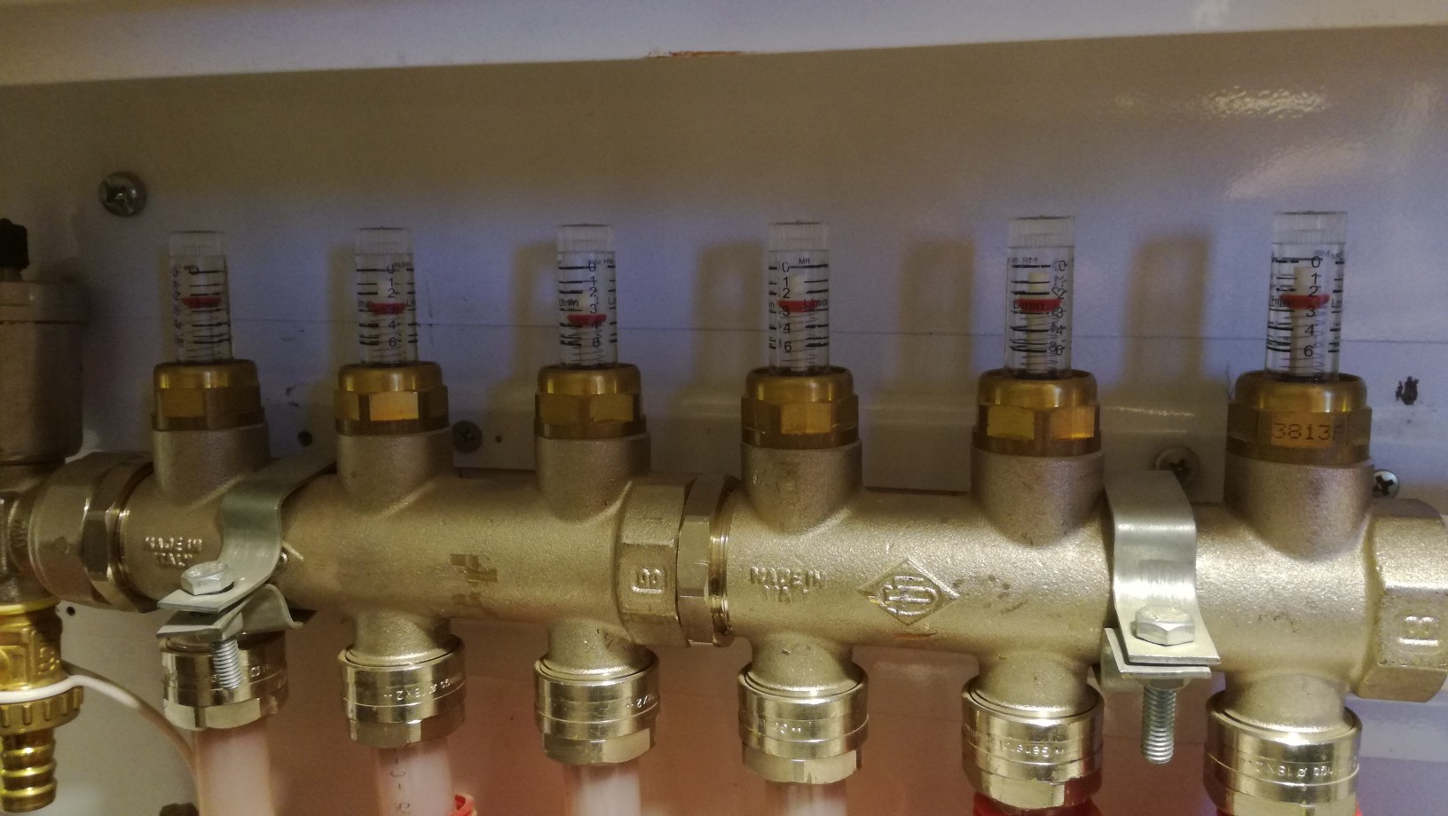 Лошата циркулация може и да е от лошо залепен PPR,получават се едни стеснения на колена,муфи и т.н,и като имаш няколко такива чакай да мине вода от там.И в моята система маи не е достатъчна,не съм я мерил,съда по Т на връщащата вода от 32гр при изходяща 40.ЦП е 25-60,на 2 и на 4 степен няма никаква промяна,дебитомерите са отворени на max и ето какво показват.Ако някои може да услужи с по голяма помпа само за проба,25-80,32-80 ще съм благодарен и :partyman: То вече май не сме за тази тема.