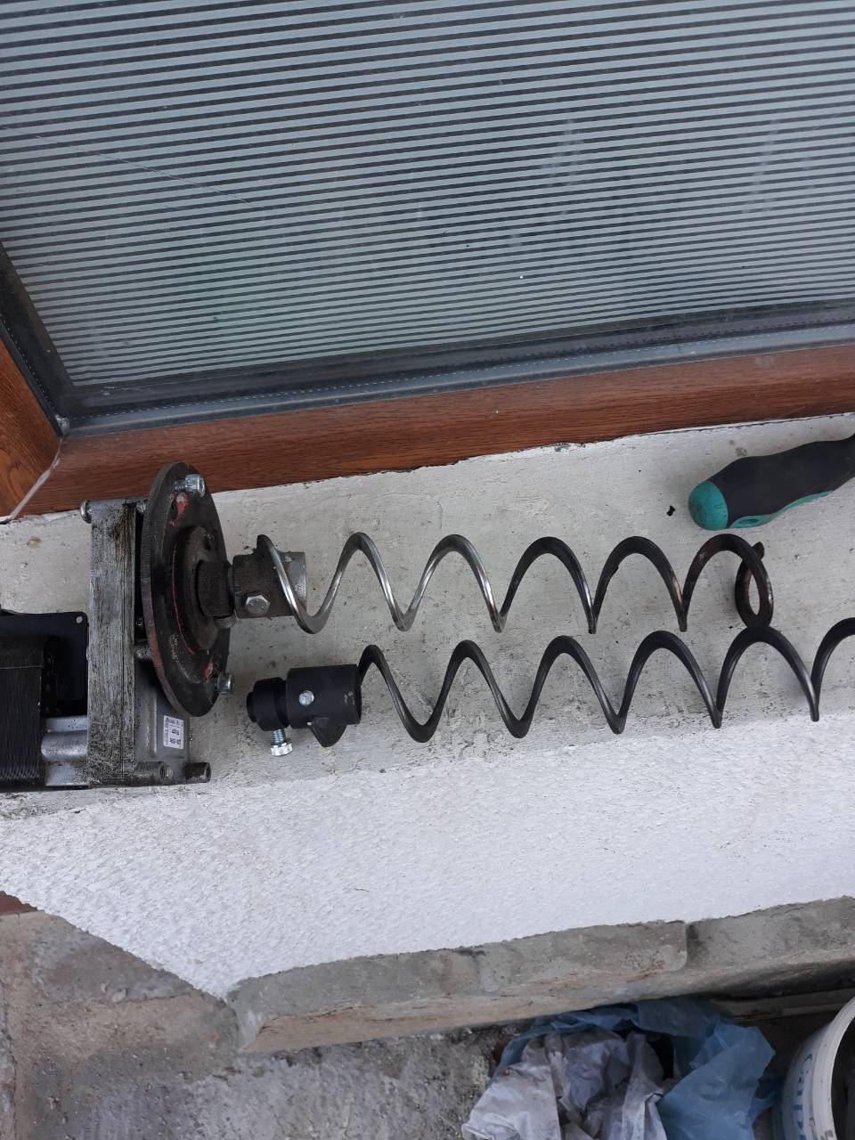 Спиралата лежи свободно в тръбата -затова си прискърцва при въртене защото се опира по тръбата .И да -ако прегрее спиралата особено това се получава при повече работа на 1 и изчакване ,лоша тяга и затваряне на клапи -та пружината се откалява и при бутане на пелети с времето се свива ,някъде с 1 сант ,другаде с 2 -рекорда е с 5