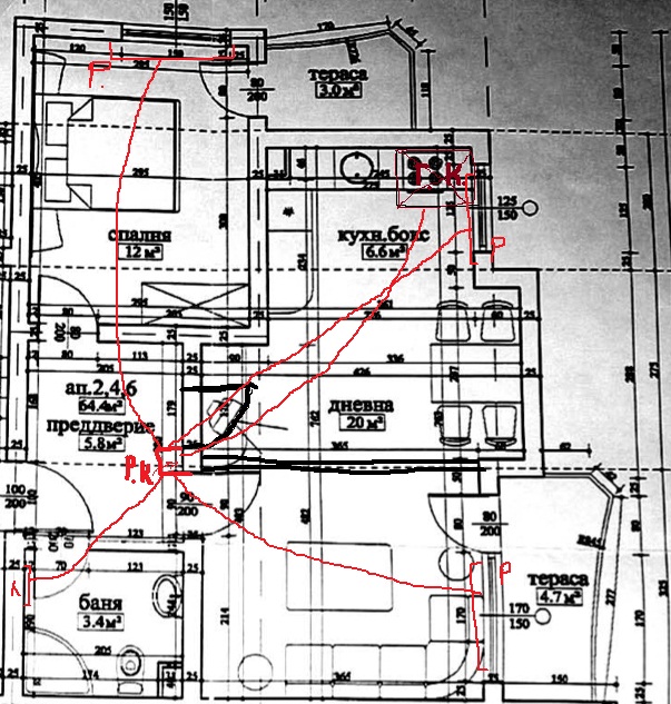 Извинявам се, че не бях активен в собствената си тема, но се наложи малко да попътувам и нямах време.Та относно апартамента, става въпрос за двустаен, който го преградихме и стана тристаен.котлето е в кухнята, но под него нямало място да се сложи разпределителната кутия и казаха че ще бъде в коридора и отам съответно по стаите.Още нямаме планове и ще сложа една скица на която съм се опитал да направа скица как ще изглежда.
