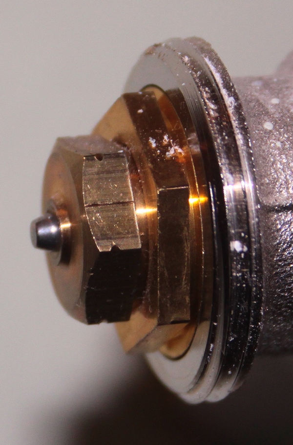 ПП.На принципа на сравнението и опит- грешка. Натиснах с ръка и отверка иглата на работещия. Усилието не е малко, но е преудолимо.Даое се чува как се спира и тръгва циркулацията в радиатора. Натиснах и иглата на неработещия радиатор. Усилието е огромно и почти не може да се помръдне. Т.е. иглата е заяла. ОТ тук нататък как е редно да постъпя, за отстраняване на проблема!?