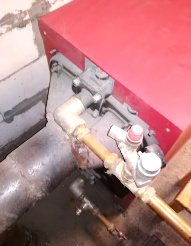 ВРЪЩАНЕ: котел, коляно, тройник с кран за източване, коляно, холендър, кран, тръби от инсталацията.