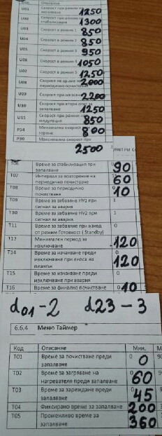 Абе добре е всичко, само бих казал, че е добре С03 да е 1, а не 0,8. Защото май и ти държеше твоята камина под 50 градуса като мен. При мен С03 беше 0,68 и веднъж ми угасна камината. Явно е съвпаднало прочистването с продължителна работа на първата степен, и ако шнека в този момент е имал някой празен ход, просто огънят е изчезнал. Затова направих първата степен на 1, а С11 ( модулация) остана 0,8. Така ако и първата е много, има къде да отиде камината. Впрочем аз и на тази стойност съм с два минуса. 1 -1, 2-1,2, 3 - 1,7, 4- 2,4, 5 - 3. С11 - 0,8. Това с два минуса. На автоматично върви камината и веднъж и тук видях,че влезе в модулация.