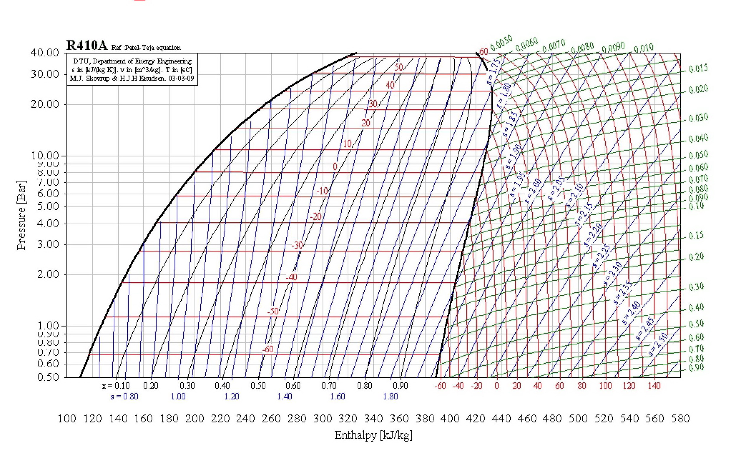 Препоръчвам Термодинамическите диаграми i -lgP за хладилни агенти.