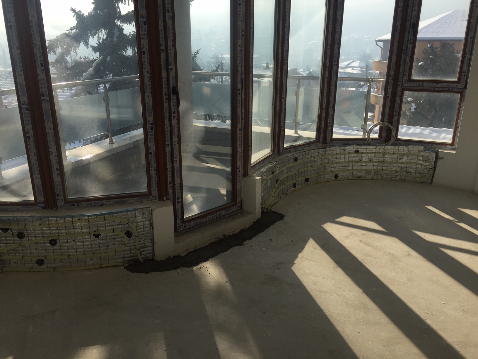 в крайна сметка направихме серпентина под прозорците, на принципа стенно отопление.