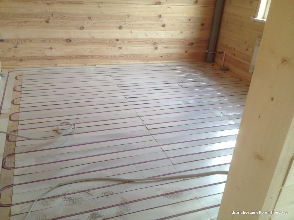 Фибрана го лепя с пяна за ТИ, а в него с оберфреза директно канали 17мм за водно подово. Няма замазки, мокри процеси и утежняване.