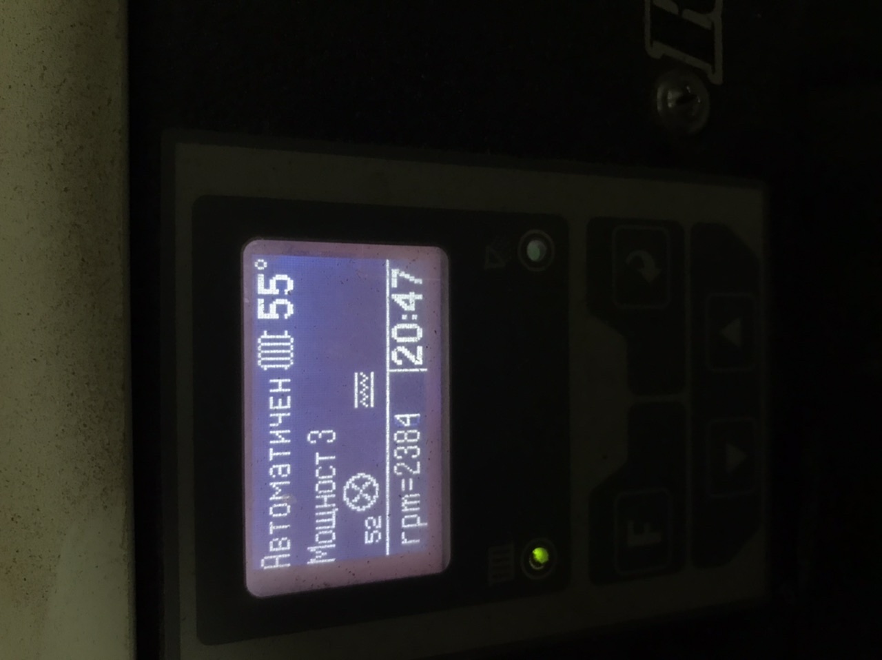 Последно настройвах на място една 20-ка. На по-високи проценти за вентилатора отколкото вкъщи оборотите бяха доста по-ниски. Горенето се получи отлично при ... не помня с точно ... 1040 оборота за мощност 1, 1200 за мощност 2 и 1330 за трета мощност. Процентите бяха нещо от сорта на 40%, 43 и 46%, а в нас съм с 36, 40 и 43 на обороти 1130, 1300 и 1430. Промених му подаването и остана доволен. Даже и аз не повярвах каква разлика се получи.