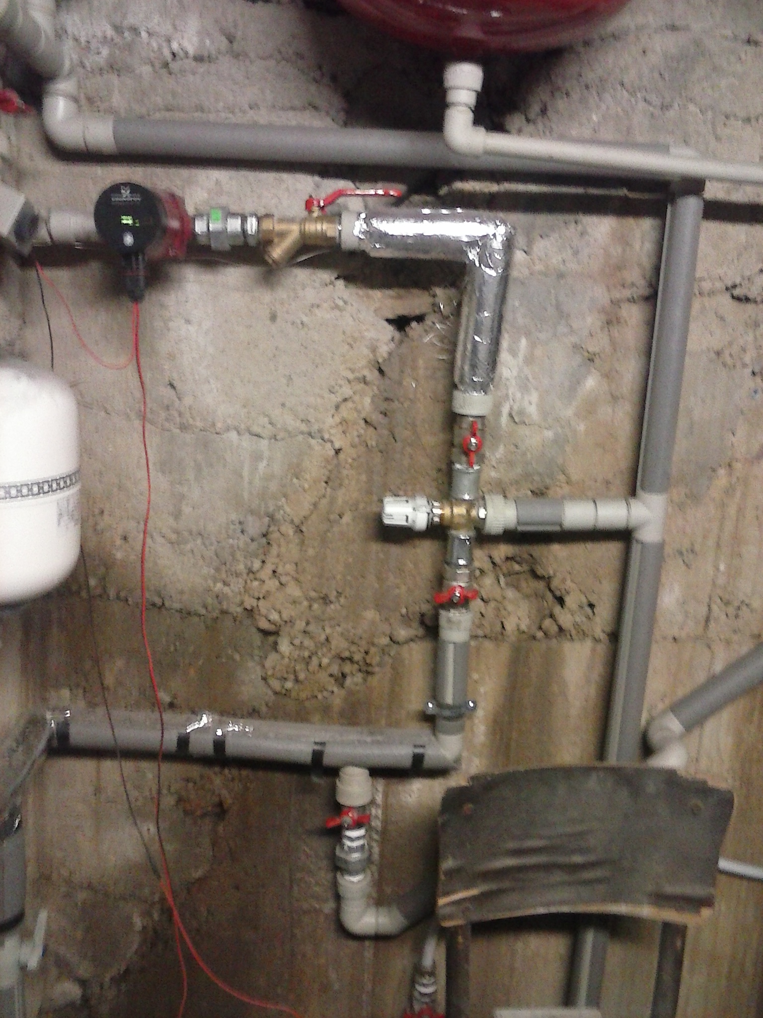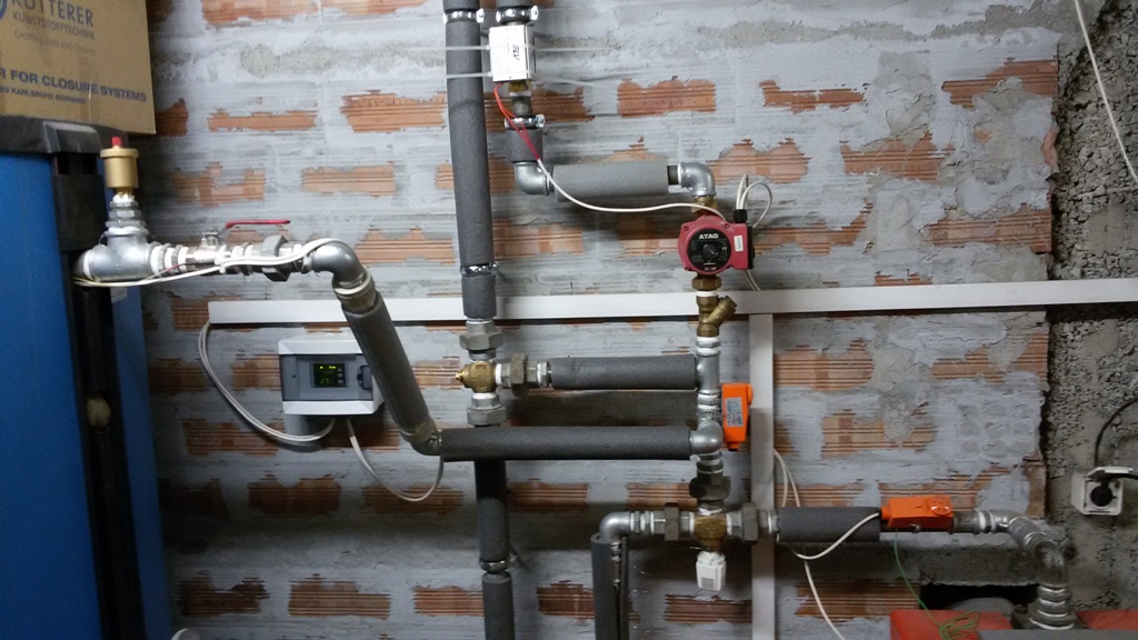 Направих си затворена система. Котел на твърдо гориво с буферен съд, малък кръг на котела с помпа, термостатичен смесител Термовар на 61С. Голям кръг с втора помпа, като преди нея сложих смесителен винтил с термо глава с изнесен сензор. Да покажа и малко снимки на опитната постановка и да започвам с въпросите... :?