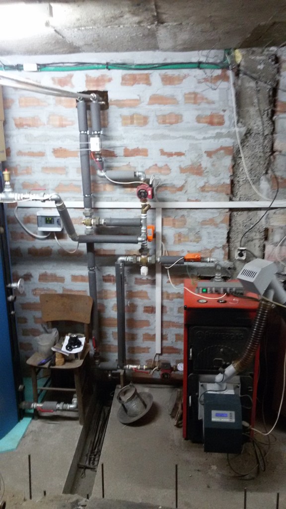 Ако и буферът е студен и втората помпа е включена от стайния термостат, първо топлата вода отива към радиаторите, затопля помещенията и след като се стопли жил. етаж и спре втората помпа, започва да топли буфера.