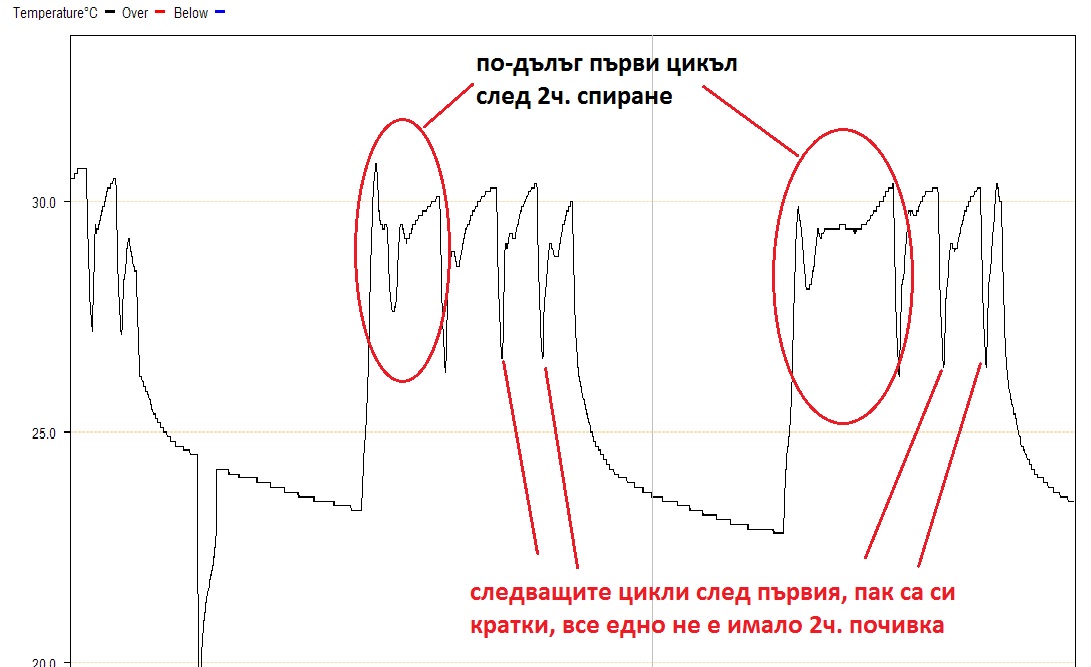 Отоплявам към 120квадрата. Хол + кухня около 45кв. в конвектори, 3 спални с радиатори, баня с лира и отделна тоалетна, бойлер 80 литра, която се отиплява от тръбите защото те минават през нея, има и килер в който има тръби. Имам и маза около 30кв. която се отоплява от самото въртешно тяло и тръби. Изолацията е 10см. на стените и тавана е с вата само. Хола ми е на 2.80 и се чудя дали да не направя подово но ме спира факта че съм с френски прозорци.