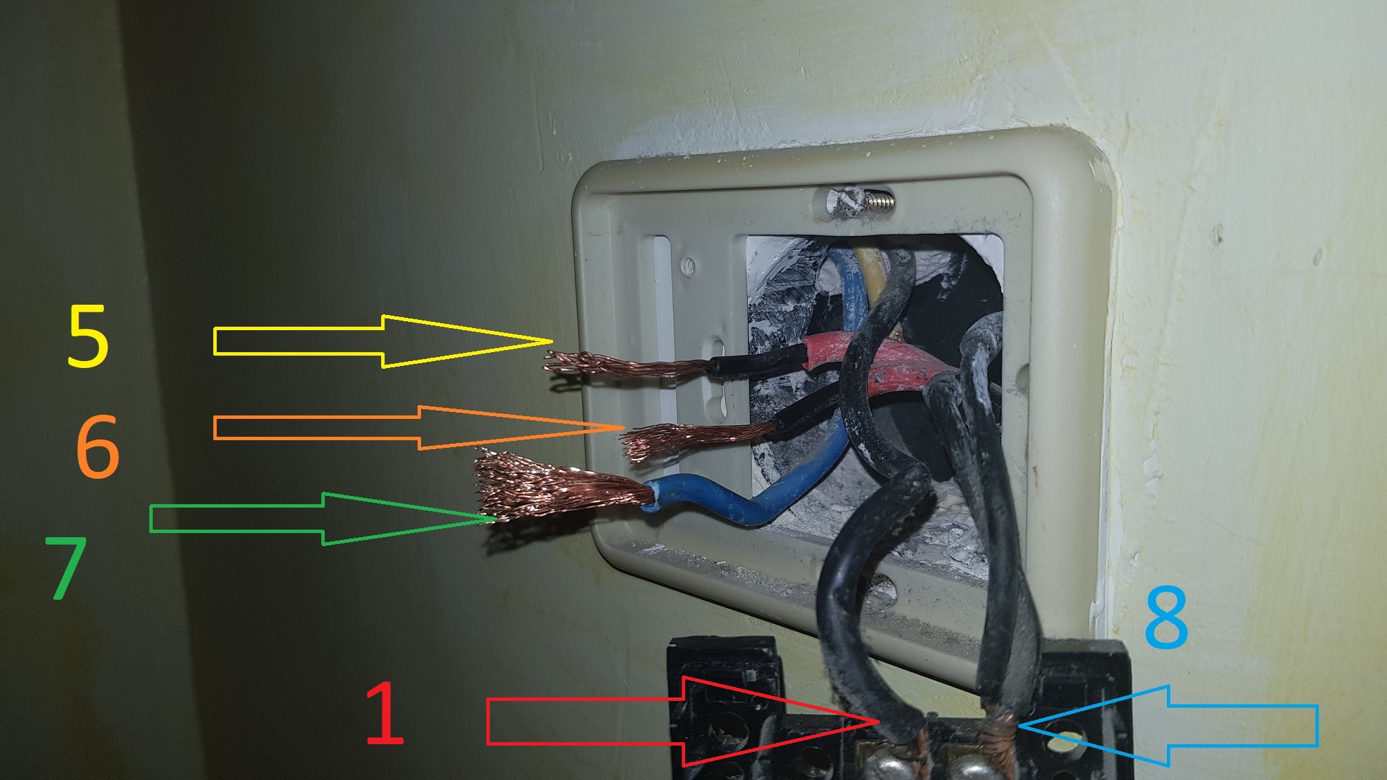 В ляво от 8 е черен кабел, който до сега не си уточнил.