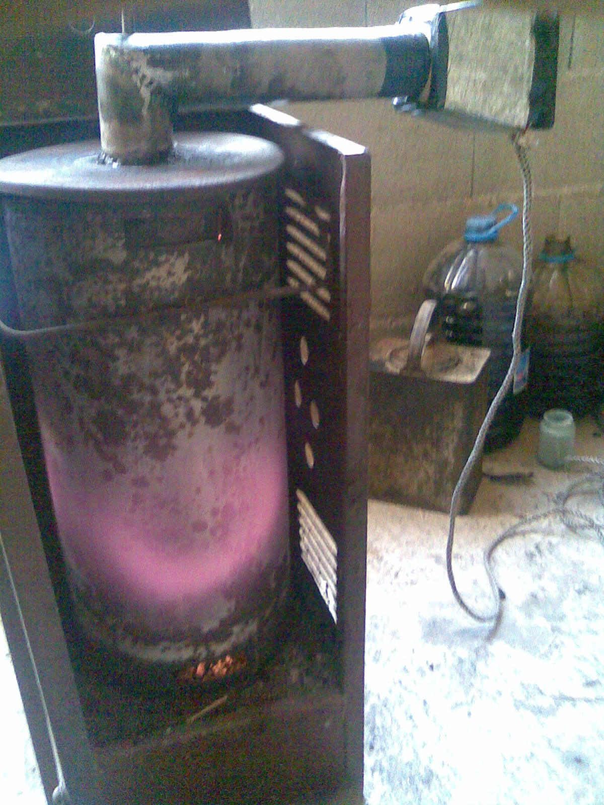 Преди около 2 години започнах експерименти с горелка на отработено масло.Писах в руски форуми,четох,обменях инфо. и най-накрая реших да пробвам някой мои идеи,които бяха модификации на видяното от мен.Стигнах до простото практично решение-маслото не гори добре без принудително вкарване на въздух в горивната камера.