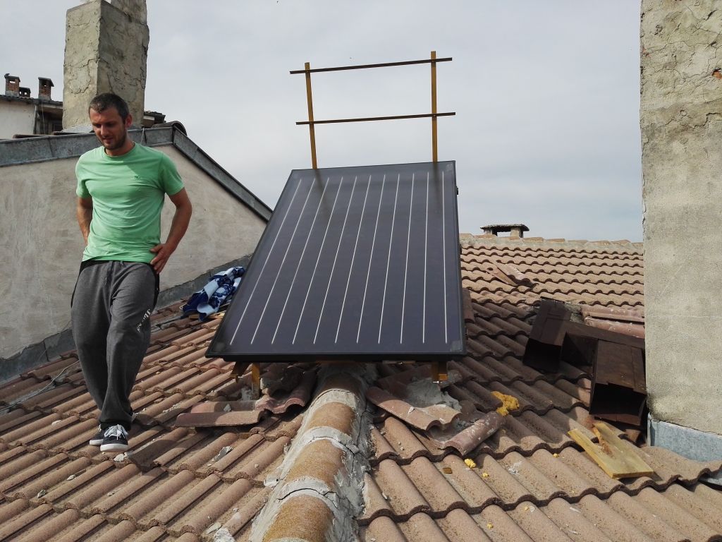 Това на Чакъра блока ли е? Тия струпаните керемиди да не ги отвее вятъра като духне! Изобщо ми се струва слабо място ХИ при монтаж на колектор ...