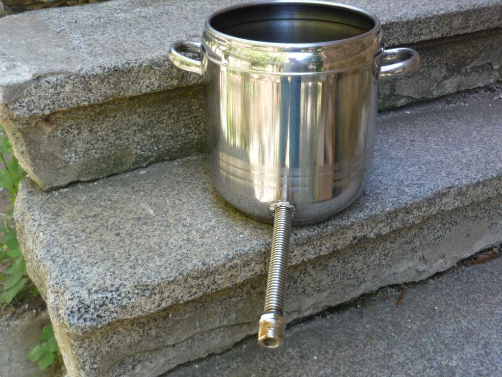 Иначе ето снимки от тенджерата в ролята на разширителен съд и резервоар за дрейн бек система.