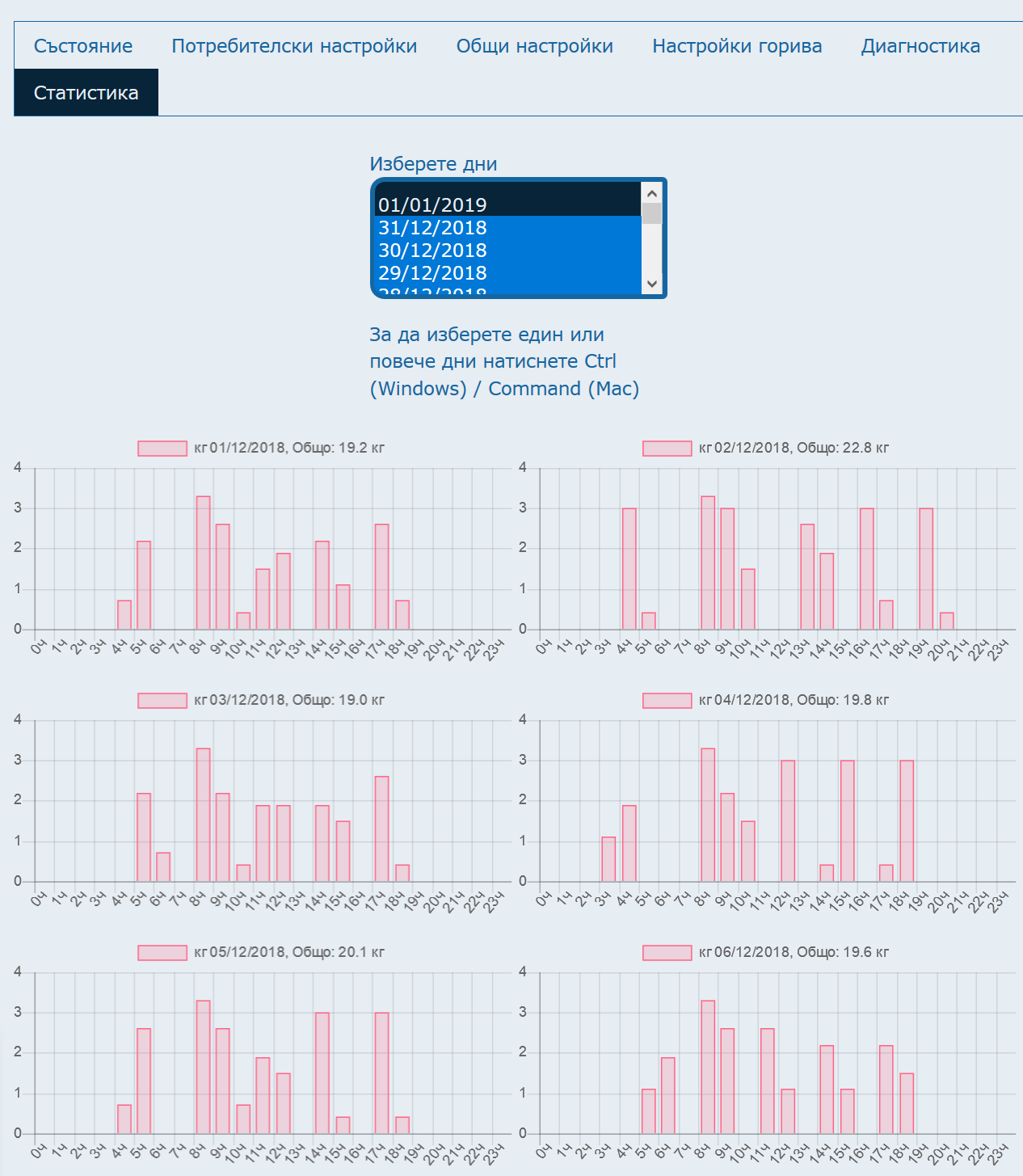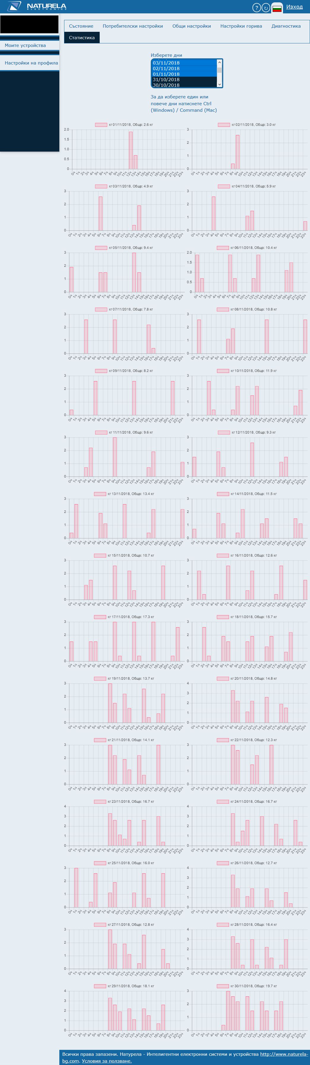 Вместо 33-34кг/ден сравнено с март месец, сега разхода въпреки многото градуси в минус (-6 -14) не достига дори 20кг/ден.