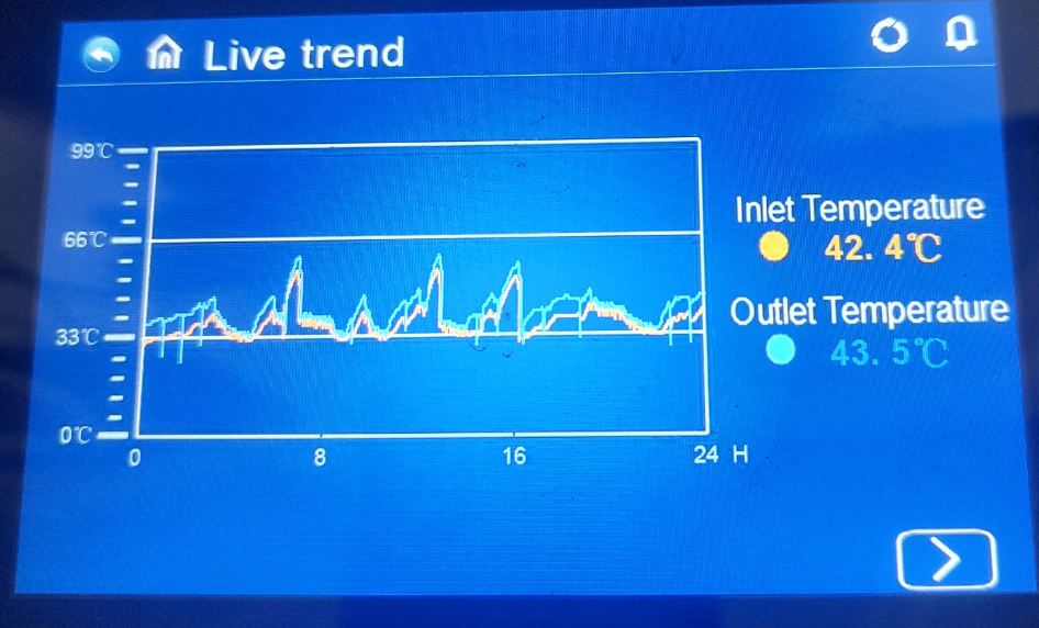 Не мога да я накарам да си промени мощността,винаги е на макс.Пробвах да й намаля нейната ЦП,за да може да вдигне зададената в параметрите температурна разлика на вход и изход на ТП от 5 градуса и да почне да намаля мощността,но не- вдигна градусите на разлика от 11° и си продължи на максимална мощност докато не достигна температура да изключи пак. Циклите си се повтарят он/оф...