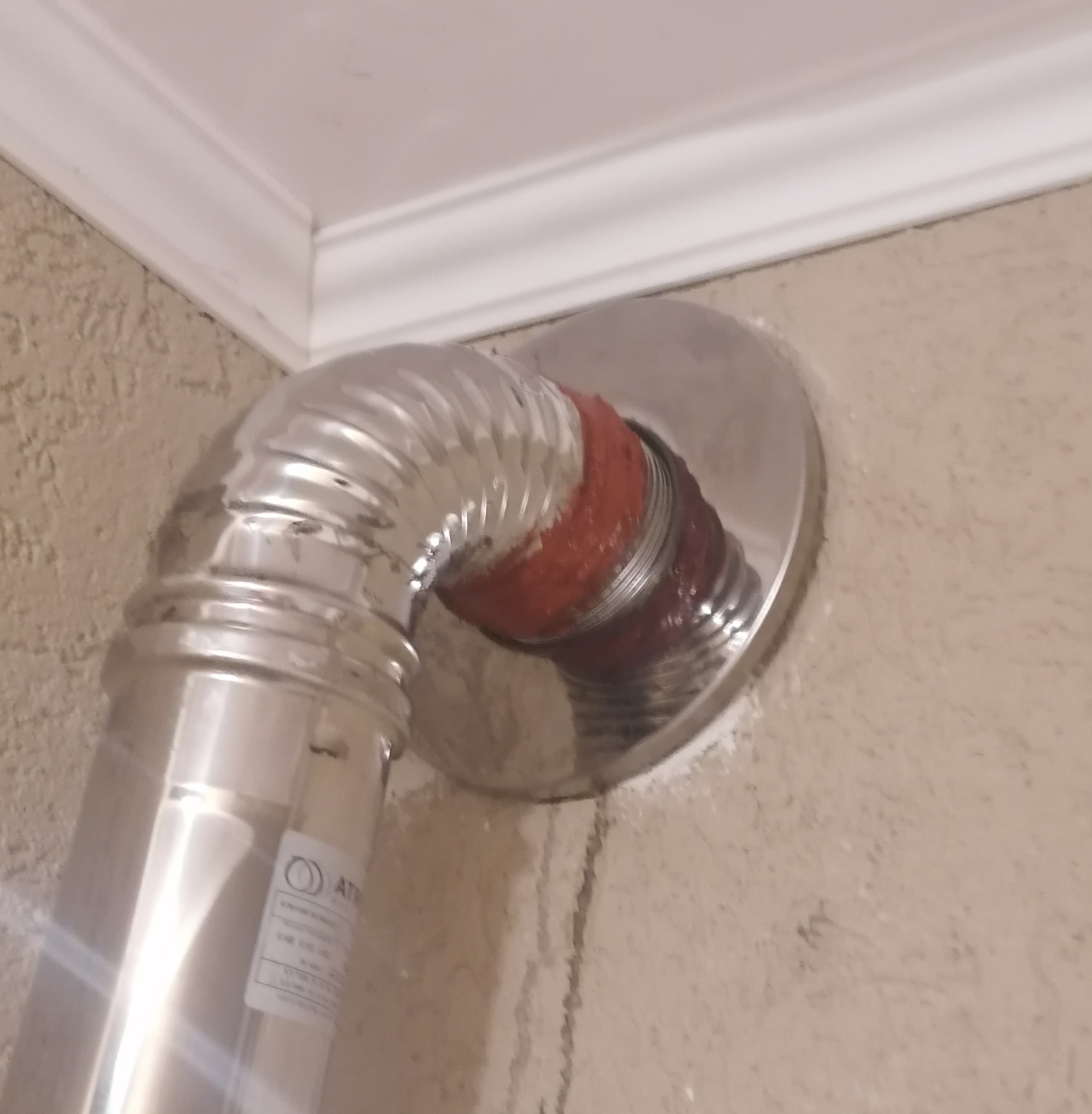 Има високотемпературни, но чак пък да не горят не знам. Има едни, за уплътняване на камини и котли, но като втвърдят, става като цимент и пуква. През пукнатината пак ще тече. Виж как съм мацал върху му! Вече няма миризма на пушек. Тиксото не може да спре конденза.