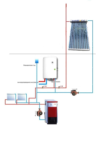 ДС преди помпата ,след серпентината?? Ок! Как помпата остава пълна,ако ДС не е затворен? И тогава системата става затворена, под налягане!? Драсни една схема ,моля те. Нещо май не връзвам? :(