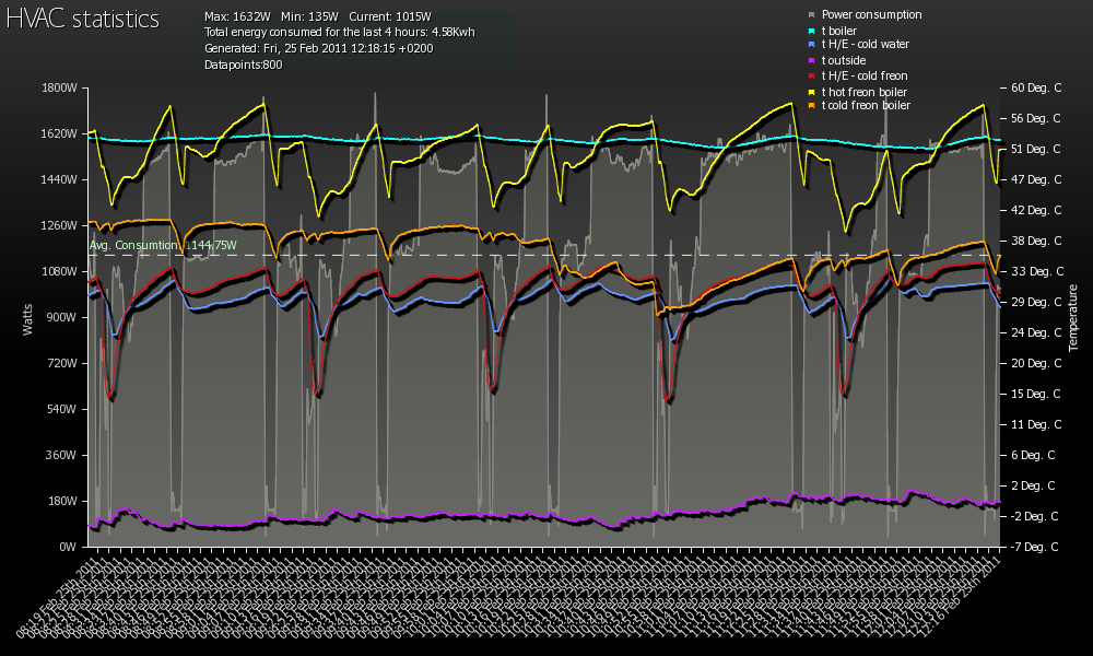 С триста зора успях да го хвана за да му дам 2800 капаро и да почне да ми прави системата. Излишно е да споменавам че първия уговорен ден за монтаж го пропусна и след дълга и мъчителна седмица на очакване се появи с необходимата техника и отбор юнаци строени за обучение. Та подчертавам, ТП не я монтира той а негови момчета които явно се учеха на работа върху моя чисто нов Daikin 71GV. След 3 дена въртене успяха да монтират и запуснат системата. Какво беше изненадването ми когато за първия пълен отоплителен месец ми дойде сметка 200 лв. можете да си представите (по думите на Ванко "това повече от 100 лева няма да харчи на месец"); втория месец пак толко +10лв; третия, който вече реално застудя - 360лв Само да спомена и факта че преди това се топлих с убиец на киловати Галан 9кВ и при него най-високата ми сметка беше 530лв. По груби сметки с COP 3 (Ванко се кълне че хваща 4-ри) тази система трябва да ми изхарчи максимум 180 лева ако го сравняваме с Галана, което е таман 2 по-малко от сметката ми за Декември.