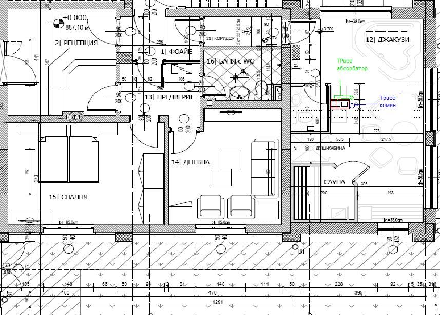 Идеята ми е да се изгради с двоино коминно тяло бетонно, едната кухина за комина другата за абсорбатора.Вътре в коминното тяло мисля да сложа огъваем въздухопровод-иноксов и да го изолирам с вата без да го подпълвам с мазилка около него.