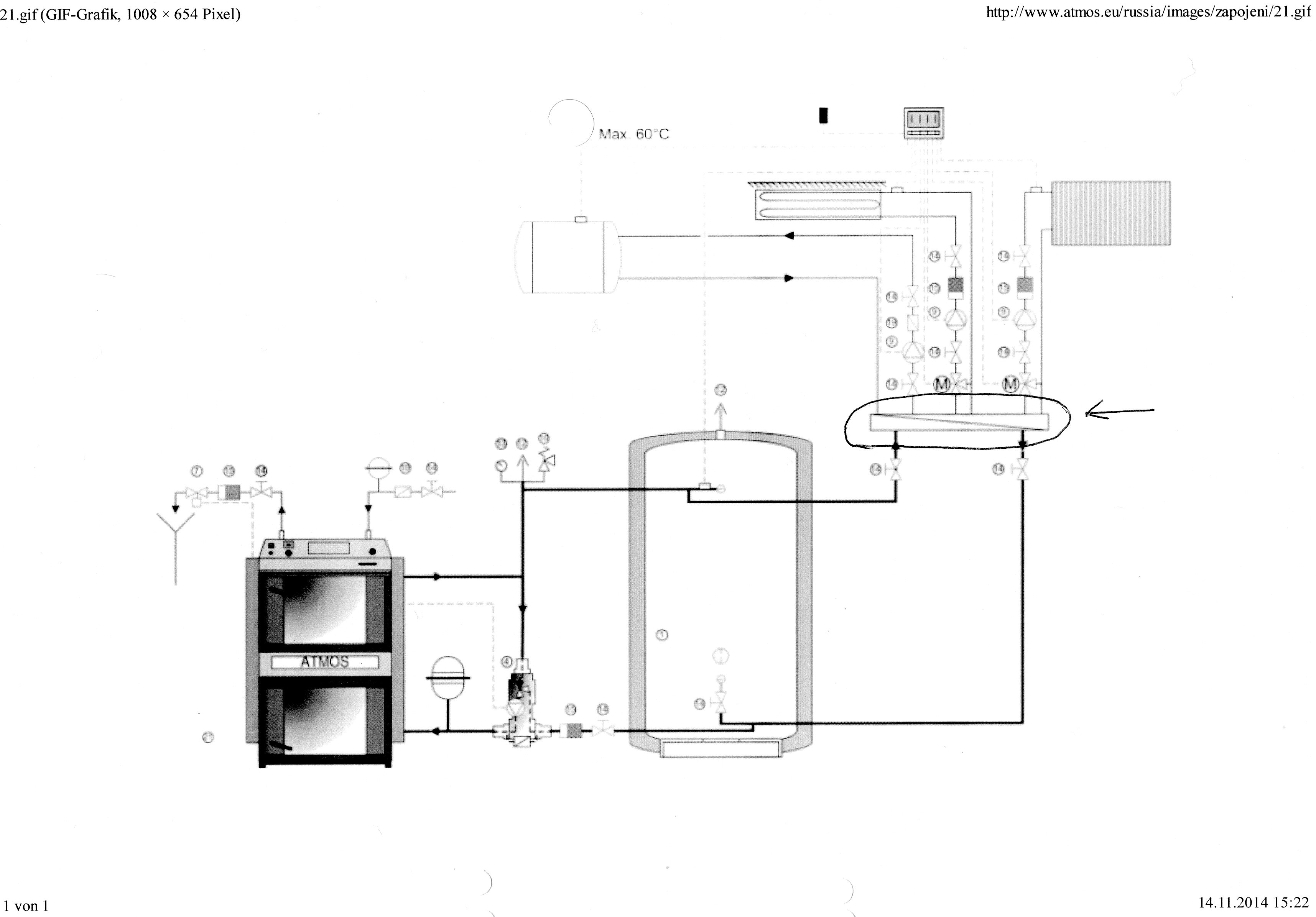 Напролет ми предстои строителство на собствена къща. От почти две години вечерите ми минават в събиране на информация - нещо много ценно за лаици като мен, затова благодаря сърдечно на всички вас, за всеки ваш пост. Ситуацията е следната, еднофамилна двуетажна къща с отопляема площ 160 км.На първия етаж, предвиждам подово водно, а на втория, ще бъде с радиатори и бойлер 200Л. По проект е заложена 8 см ТИ и ПВЦ дограма.Отоплението ще бъде на дърва. Молбата ми е! 1.Бихте ли разяснили как точно се изпълнява посочената част от схемата? 2.И по мои първи изчисления, мощността на котела, който ми е необходим за тази площ (km * 180W), плюс бойлера e 30kw, не е ли голям този котел ? Благодаря !!!