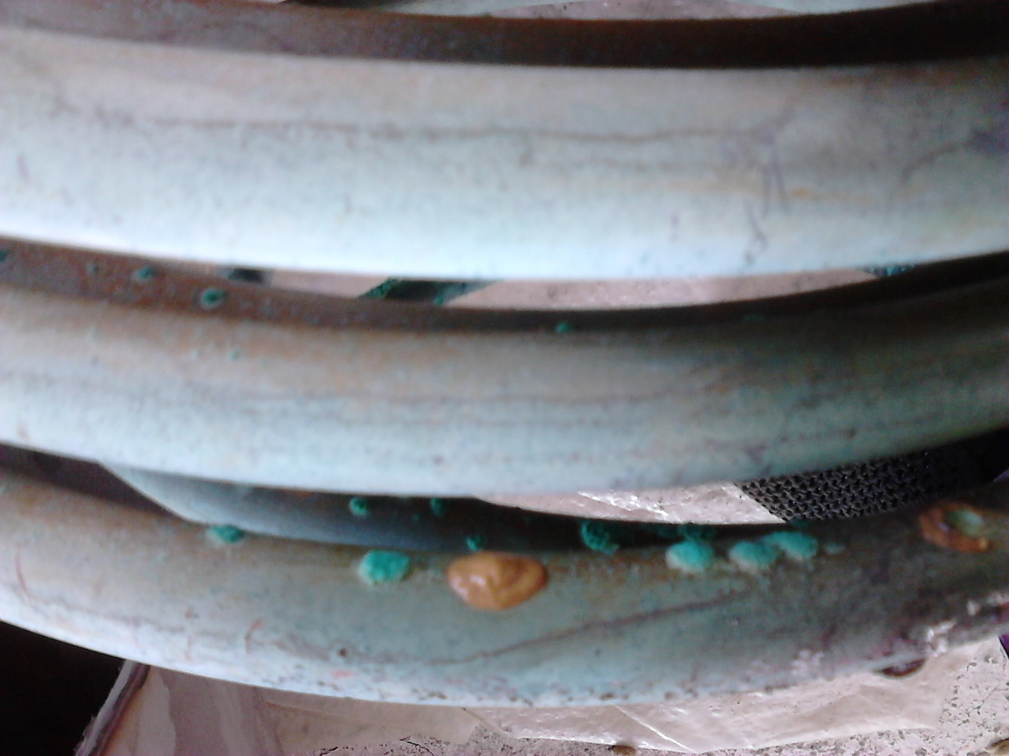 Имам много интересен проблем и ако успея с ваша помощ да го разреша ще съм много благодарен! Серпентината на картинките по долу е ремонтирана вече два пъти.А проблема е че след не много дълга употреба по серпантината се появяват язви и се пробива, в следствие на което течността от слънчевия колектор се смесва с водата в бойлера! Серпантината е медна а бойлера неръждаем .При първия ремонт в долния край на серпантината имаше две язви -запуших ги и така изкара малко повече от година и пак започва смесването на водите...!След което отново отворихме бойлера, този път имаше доста повече язви ,принудих се да сменя почти целия долен сектор от серпантината НО отново след около година ,пак се появяват язви и има пробив ....?!