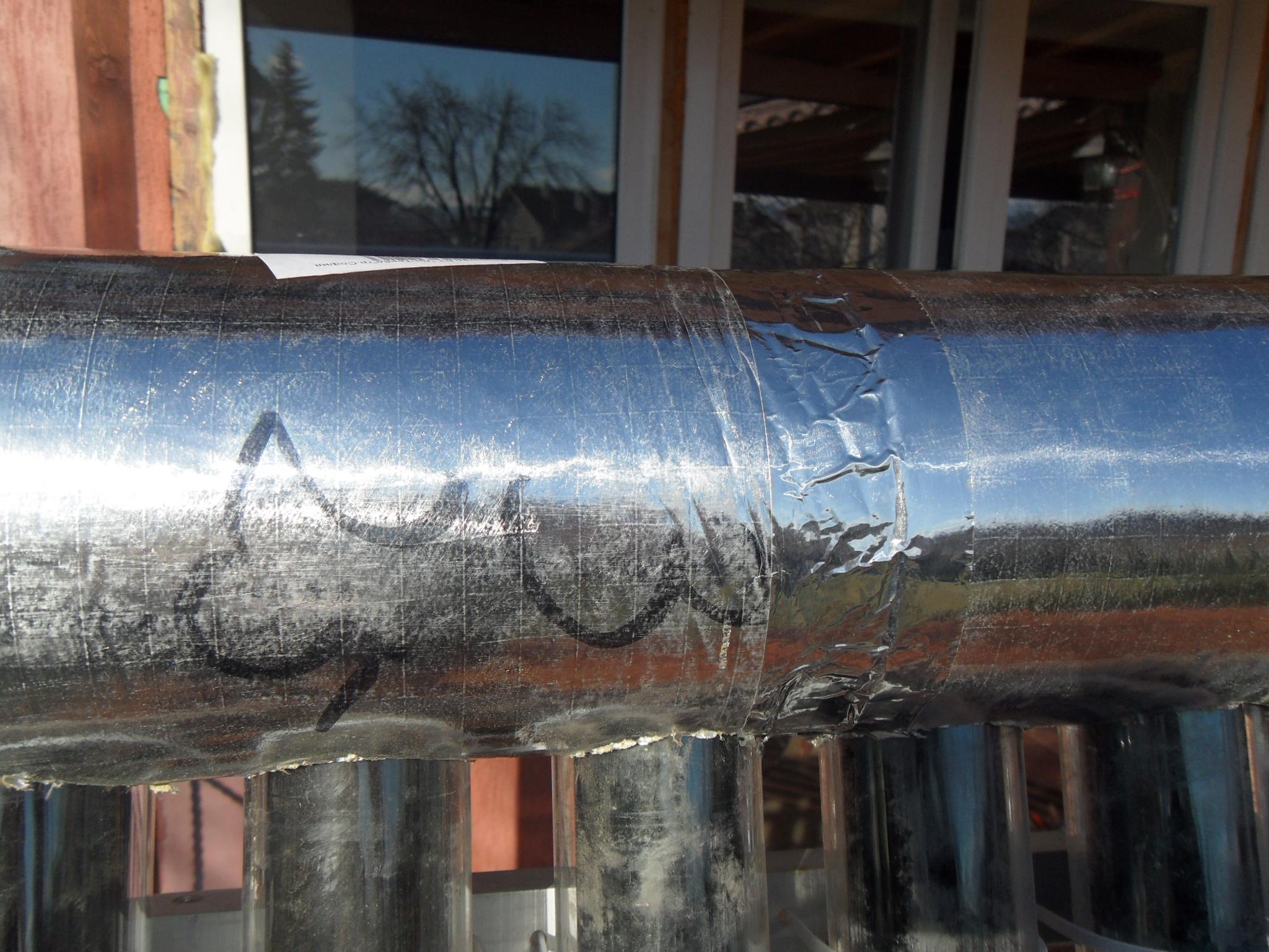 SAM_7296.JPG Шалето е дълго 1200 мм, а за 20 тръби колектора трябва да е 1600мм, затова е от две части