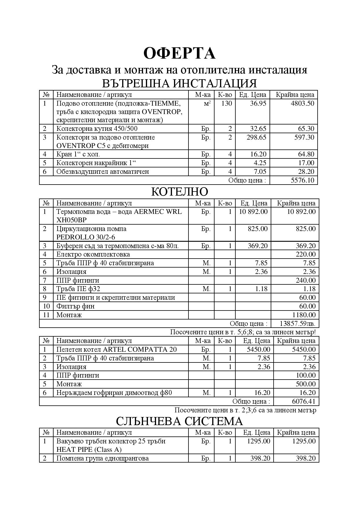Прилагам и офертата, компетентните да кажат добре ли все пак като цена като е заложена с ТП вода вода или пелетен котел.