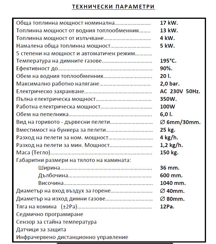 Производителят дава само топлинната мошност, а именно: 13+4=17 киловата. Никаде не става и дума за минимална или максимална присъединителна електрическа мощност.