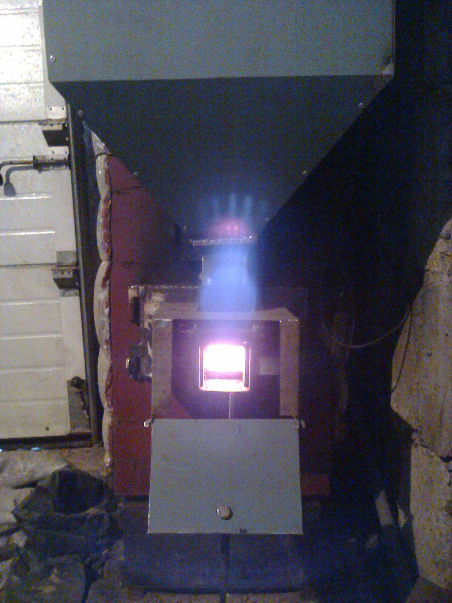 Няма шнекове(нито хоризонтални нито вертикални) няма винтелатори няма кабели няма програматори тем подобни затруднения.Има няколко броя решетки с различни отвори.Чрез тях се регулира мощноста.Едно от основните условия за добра работа е уплътнен котел и хубава тяга на комина.Това е философията всичко просто е надежно.Дефакто няма какво да се развали.Няма температурни амплитуди като при въглищата.Работи равномерно в зависимост от това с коя решетка е.В момента е това температурата и повече няма да стане докато не сменя решетката.