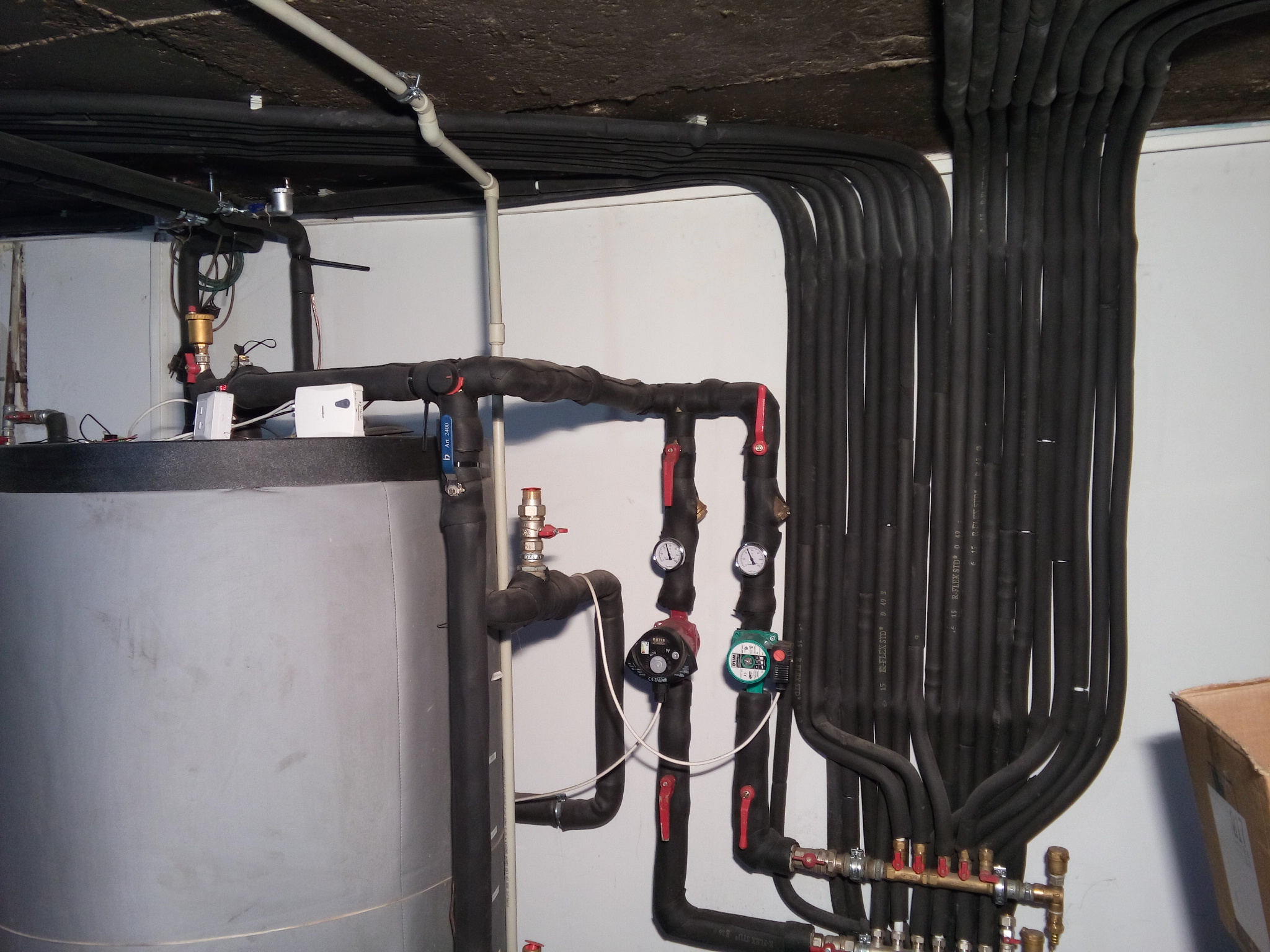 Здравейте,моля за вашите забележки и съвети по новоизградената ми отоплителна инсталация.Става въпрос за къща на един етаж ,приблизително около 70 кв.Външна изолация 10см. на Baumit,pvc дограма с обикновен стъклопакет и частична вътрешна изолация.Котелно помещение в мазата.