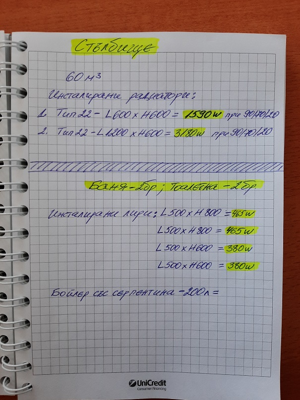 За изчисленията на съществуващата ми инсталация, понеже изобщо не се бях сблъсквал с това досега се доверих изцяло на опита и практиката на майстора.