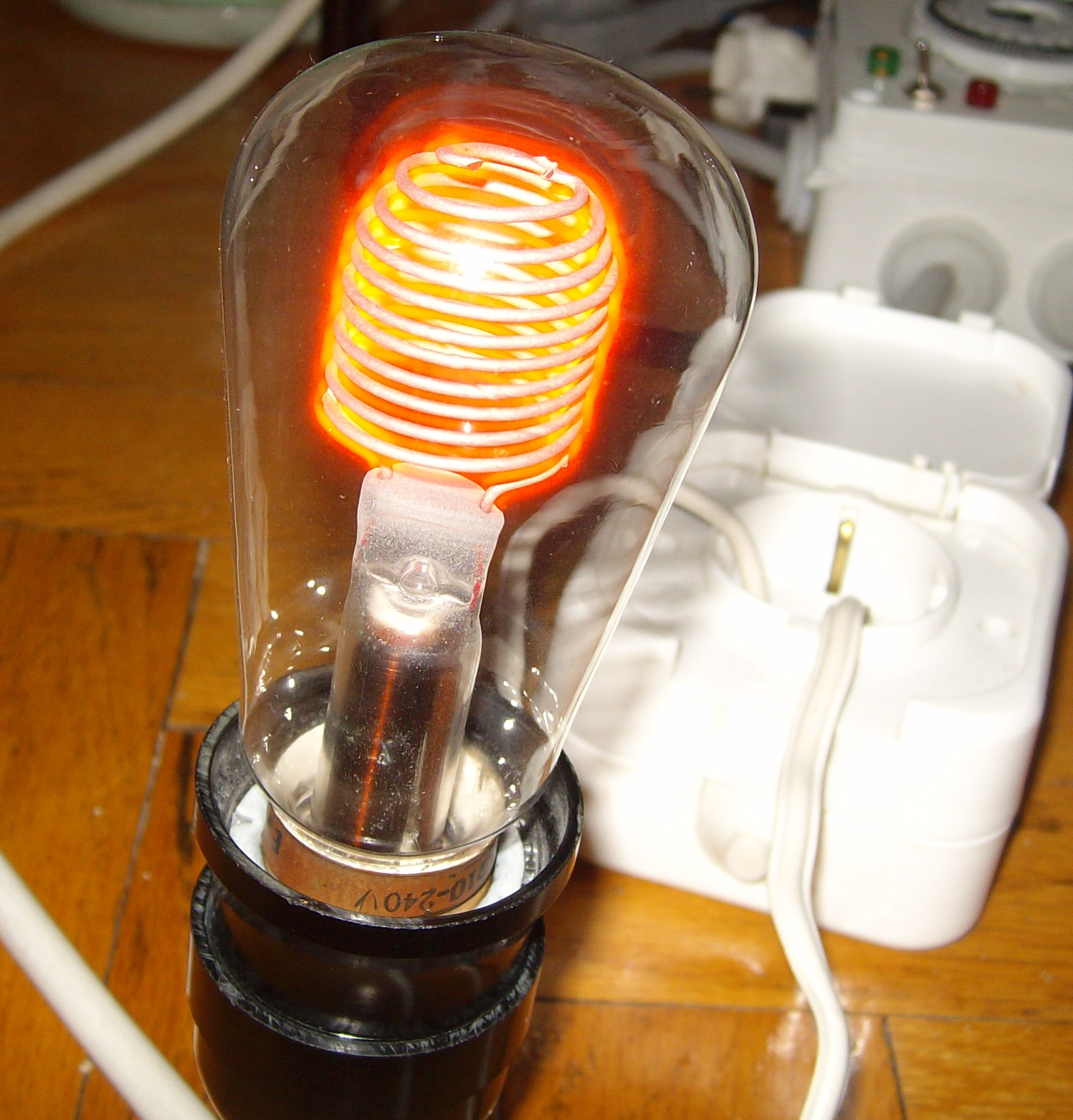 Здравейте, отдавна имам една лампа. Вероятно и някаква глим лампа на цокъл E27. На цокъла с полуизтрити букви пише "респром". Точно в центъра на балона отгоре спиралата е прекъсната(така си е фабрично).