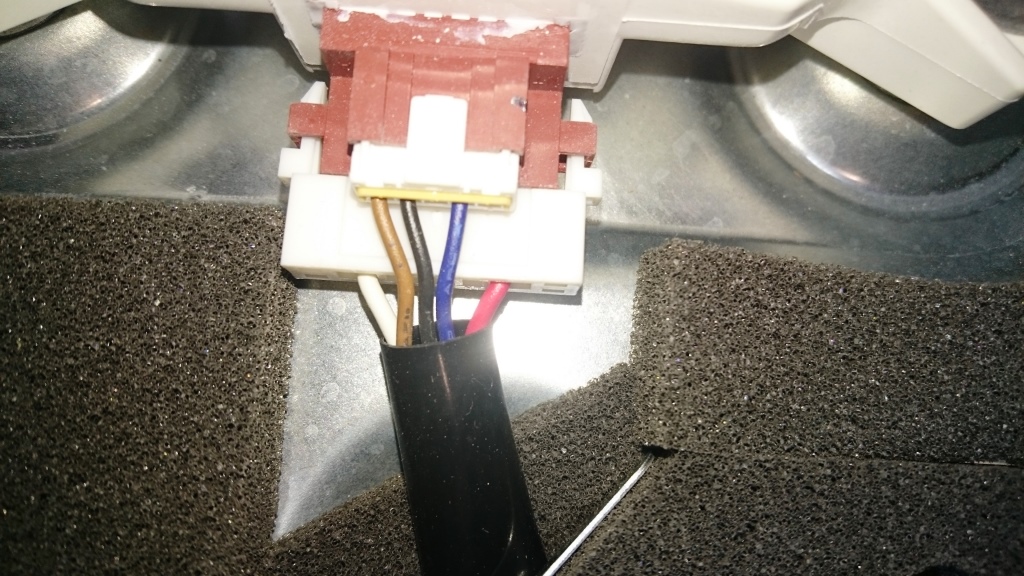 - куплунга от мотора на мястото което влиза на голямата платката, и от страна спойки куплунга. (бял, червен, кафяв, черен, син) - другият край на кабела къде е забит? Има междинен куплунг/удължител където се променят цветовете.