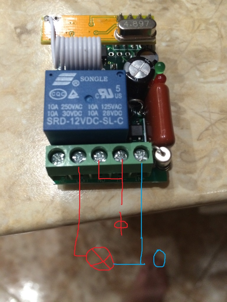 И още едно малко уточнение - фазата отива направо при второто болтче отгоре надолу и няма връзка там където се пресича с другия кабел (нулата).