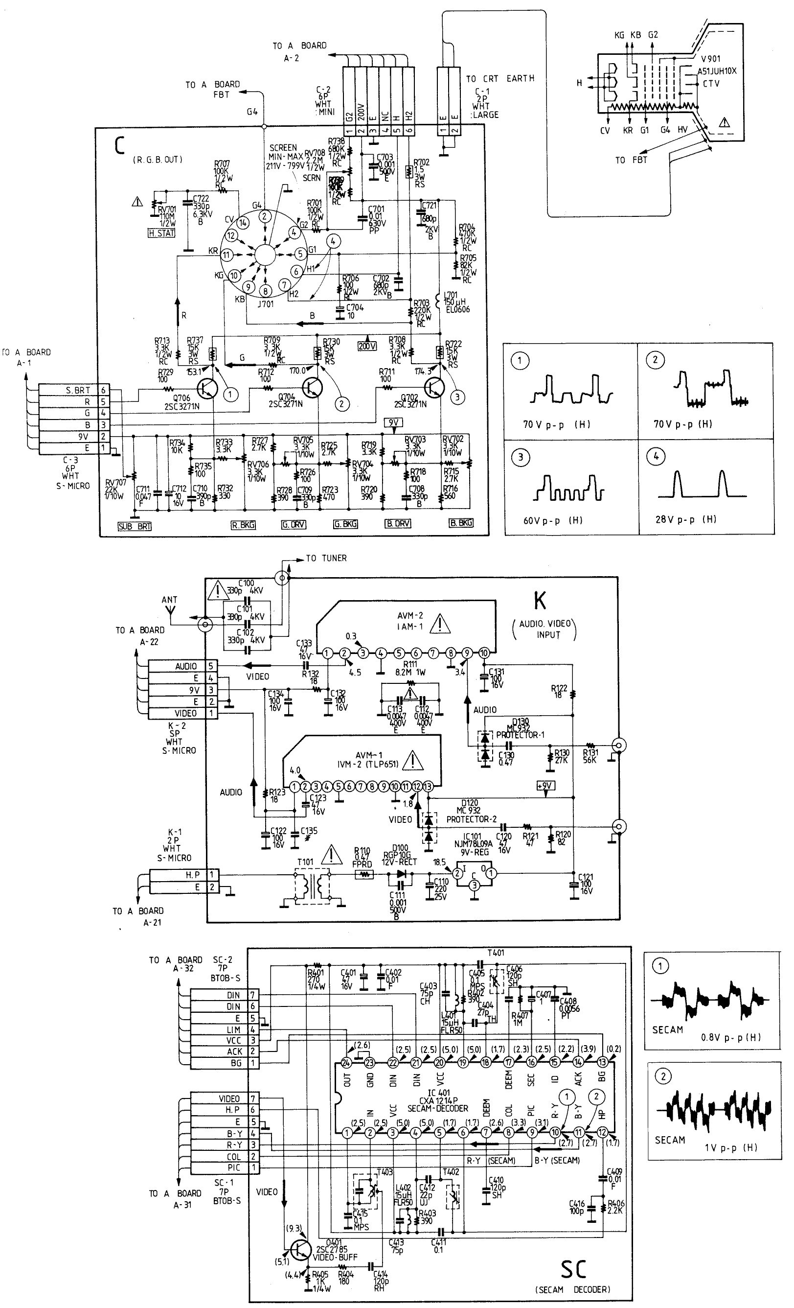За къдренето, С-854 и С-855 на входа и изхода на IC-851 стабилизатора на 9 волта. Също и стойността на В+ 115 волта и съответно кондензатора С-609.